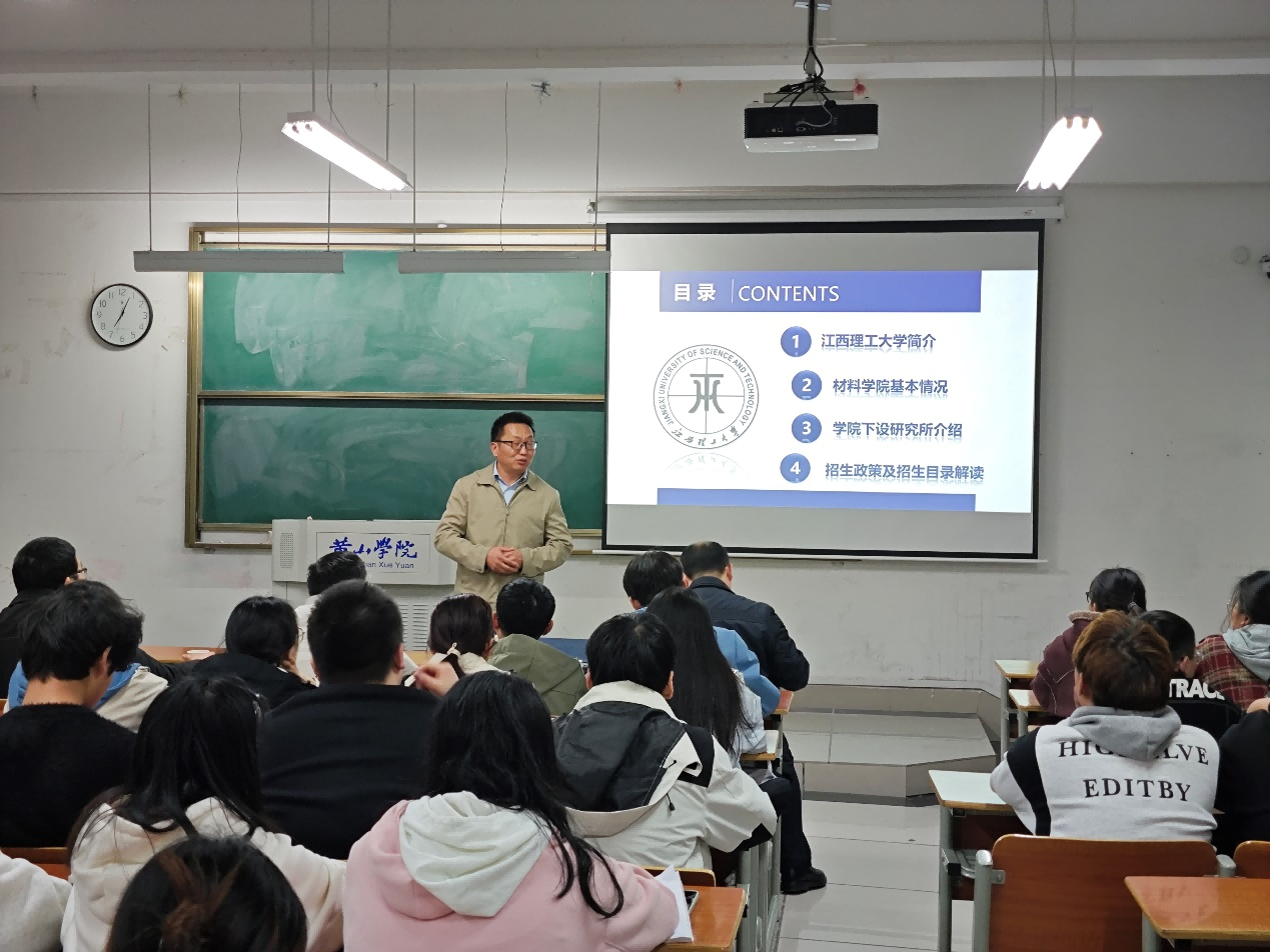 为进一步推动学风建设,激发学生考研热情,服务学生考研需求,4月1日晚,江西理工大学材料科学与工程学院姚文俐教授来化学化工学院进行研究生招生宣讲,为该院学生提供了专业指导。化学化工学院材料科学与工程专业教研室教师、辅导员和90多名学生参加。