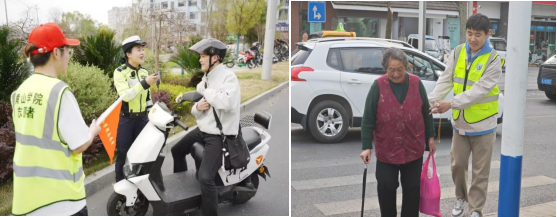 在晚高峰时的交通路口,化学化工学院的志愿者们头戴小红帽、手持文明交通劝导旗,协助交警维护交通秩序。本次文明交通劝导活动持续了整整一个月,每天从早高峰到晚高峰,共有25名志愿者参与其中。他们累计服务时长达到123小时,耐心地提醒行人遵守交通规则,对闯红灯、乱穿马路等不文明行为进行劝阻多达128次;帮助老弱病残孕等特殊群体安全过马路38次。无论是烈日当空还是微风细雨,志愿者们始终坚守岗位,用自己的热情和耐心为城市交通文明贡献力量,成为街头一道亮丽的风景线,引导市民共同营造安全、有序、文明的出行环境。