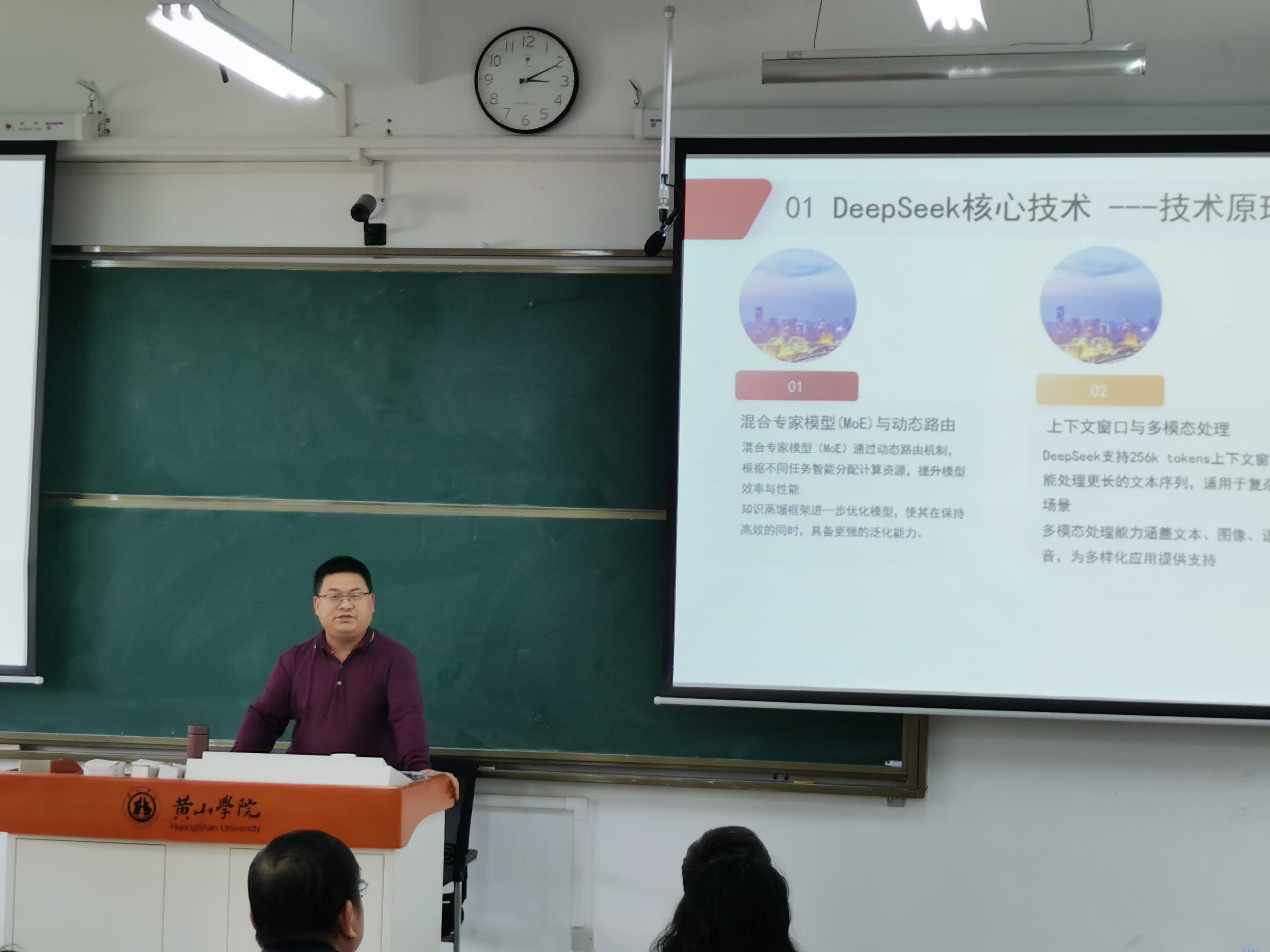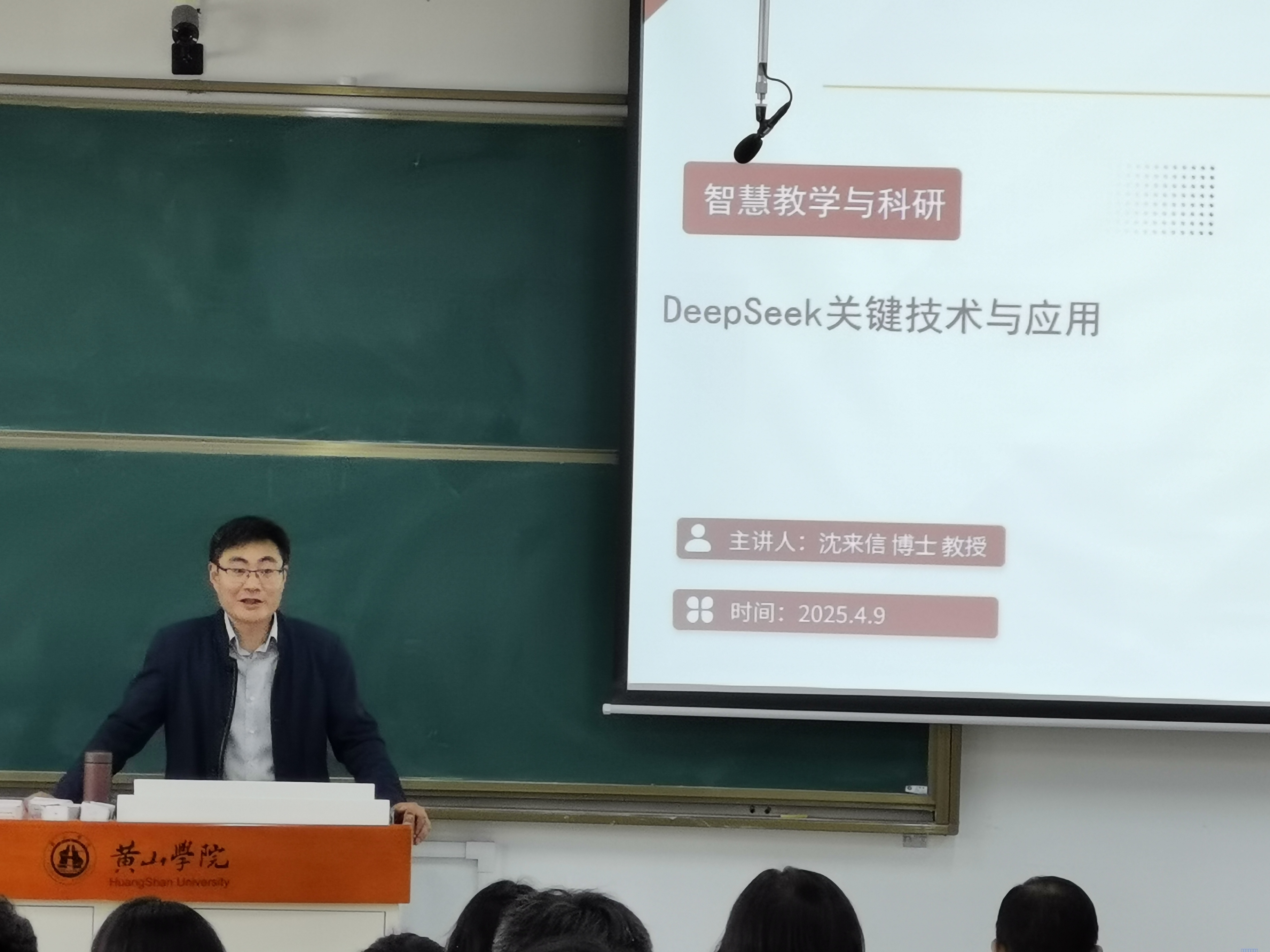 为贯彻落实国家教育数字化发展行动,推进人工智能技术与教育教学深度融合,4月9日下午,教务处在率水校区文渊楼1405教室顺利举办“Deepseek关键技术与应用”专题讲座。本次活动特邀信息工程学院人工智能教研室主任沈来信教授担任主讲,各院系线上线下共三百余名教师参会。会议由教务处副处长孙克奎主持。