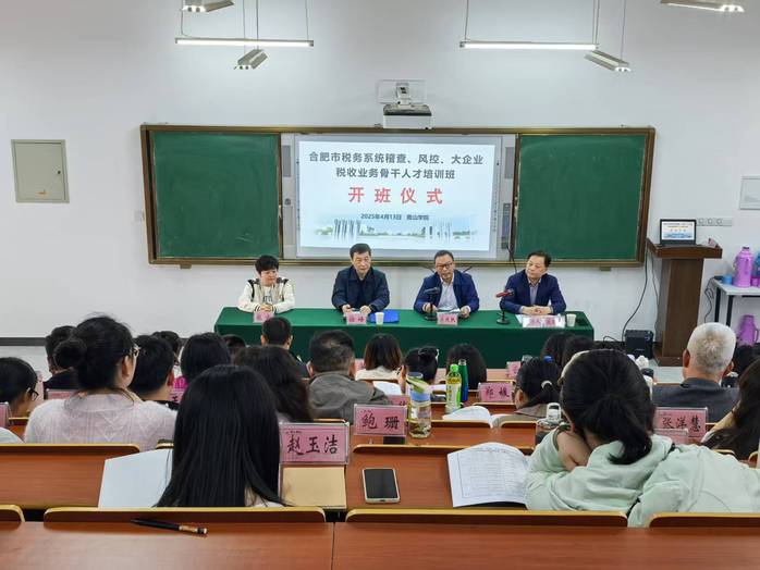 4月13日,我校与合肥市税务局联合举办的合肥市税务局稽查、风控、大企业税收业务骨干人才培训班开班式在我校横江校区徽风苑一楼教室举行。