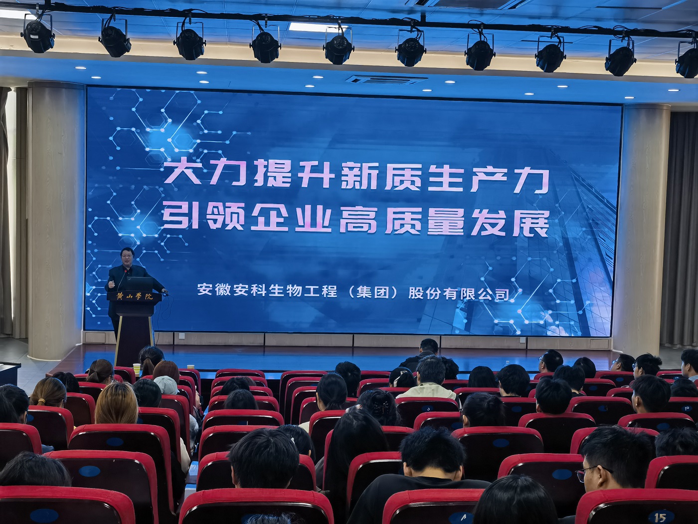 4月15日下午,生命与环境科学学院“生命之光”企业家讲坛第八讲在文端楼二楼报告厅举行,安科生物公司执行总裁姚建平作题为“创新引领生物技术产业高质量发展”的主题报告,安徽凌瑞建筑工程有限公司董事长王正东、生命与环境科学学院党委书记吕顺清和生物技术、生物科学专业师生参加。报告由生命与环境科学学院党委副书记、纪委书记万志兵主持。