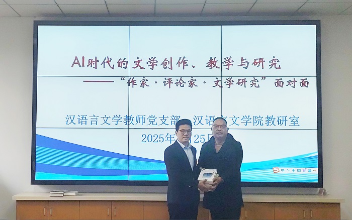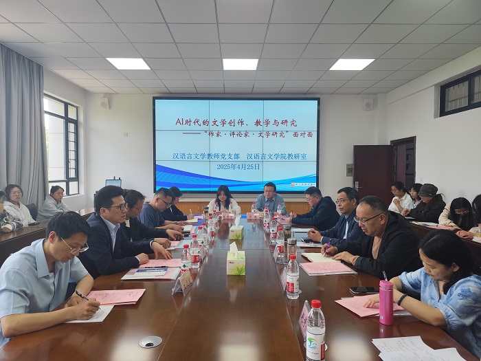 4月25日下午,文学院在文端楼二楼会议室举办“AI时代的文学创作、教学与研究”暨“作家·评论家·文学研究”面对面交流座谈会。座谈会由文学院副院长朱宏胜主持。安徽省作家协会副主席、安徽省文艺评论家协会副主席、安庆市文艺评论家协会主席、安庆师范大学人文学院教授江飞,青年作家、黄山日报社总编办副主任、黄山市作家协会副主席胡玉琪,青年作家、黄山作家协会副主席汪远定,青年作家、博业体育(中国)官方网站-登录入口外国语学院副教授郭飞,文学院领导及汉语言文学专业相关专业师生代表参加了交流。