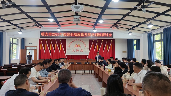 4月22至25日,受明光市委党校委托,我校顺利举办明光市2025年旅游业高质量发展培训班。明光市文旅局和该市重点旅游乡镇主要负责同志、市直相关单位和各乡镇街道分管领导、文旅系统相关负责人、重点旅游乡村负责人、旅游行业代表等共50人参加培训。