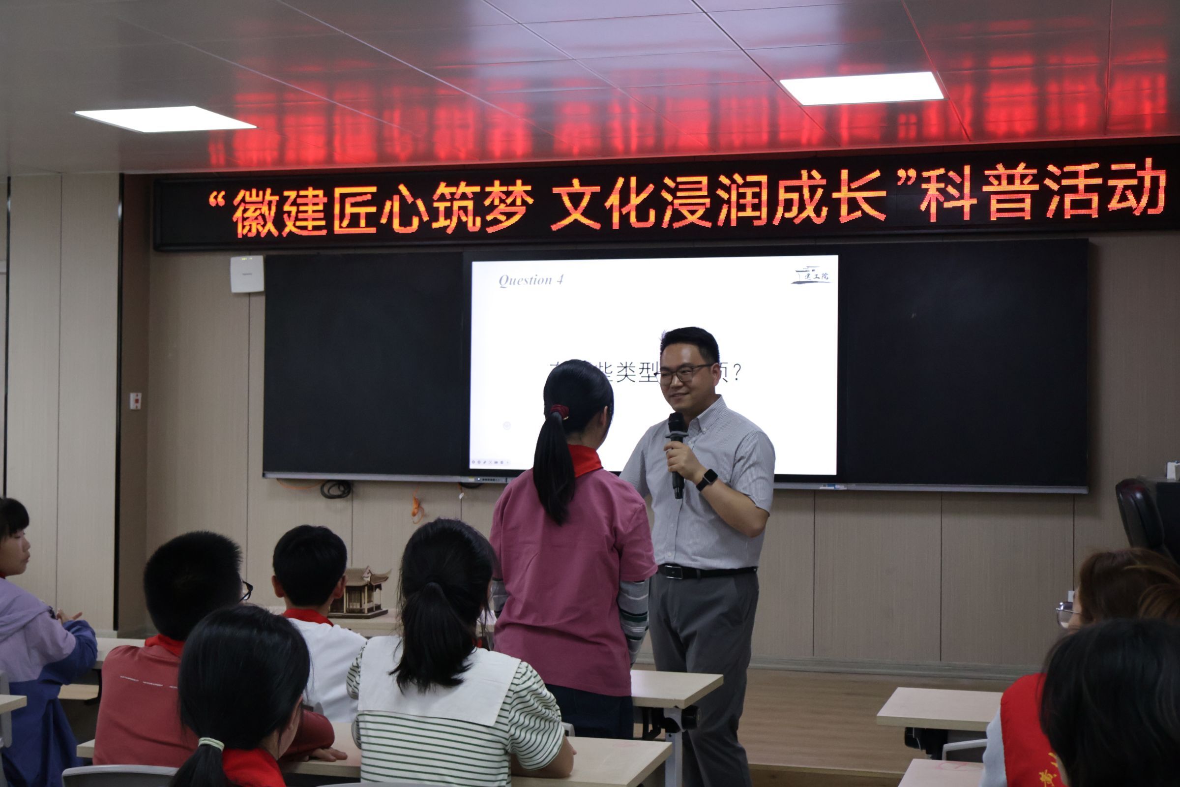 此前的四场宣讲活动同样精彩纷呈。面向旅游学院师生,宣讲团结合旅游专业特色,讲解徽派建筑与当地旅游发展的紧密联系,为旅游专业学生提供了独特的文化视角;与戴震路社区党员交流时,为党员们讲述徽派建筑背后的红色故事与时代价值,增强社区党员对本土文化的认同感与使命感;为屯溪现代实验学校小学生宣讲时,通过趣味互动,激发孩子们对传统文化的浓厚兴趣。