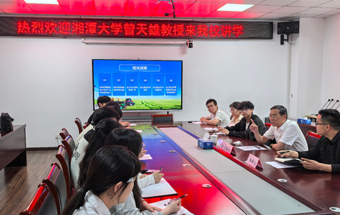 4月29日下午,校团委组织开展的第十期听松乡土说暨大学生赋能乡村振兴系列座谈在大学活动中心二楼会议室举办。国务院政府特殊津贴专家、全国优秀教师,湘潭大学二级教授、博士生导师曾天雄应邀作“进一步深化农村改革,扎实推进乡村全面振兴”主题座谈,我校乡村振兴实践社30余名学生参与座谈。