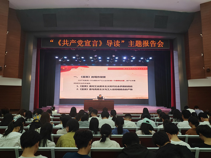 为引导学生骨干读原著、学原文、悟原理,深刻领会马克思主义经典著作的精髓要义。5月7日下午,校青马班在率水校区大学生活动中心大礼堂举办《共产党宣言》导读报告会。马克思主义学院教师程天明应邀作主题报告,校院两级青马班学员参加了本次活动。