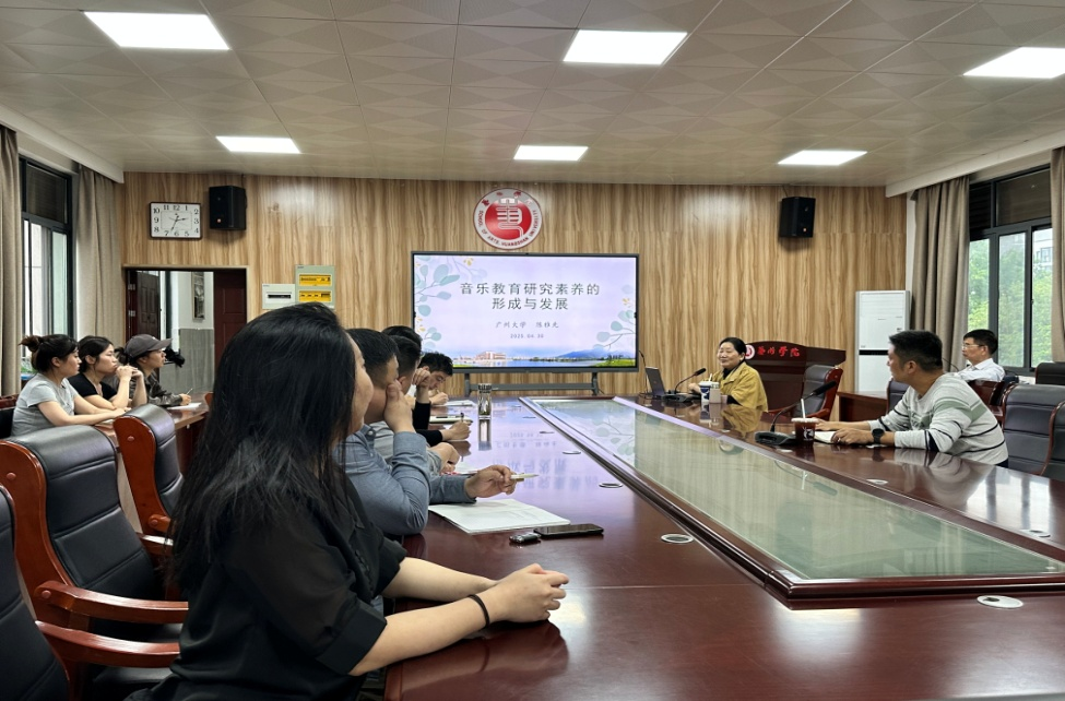 5月8日下午,艺术学院音乐学教研室举办“地方高校音乐与舞蹈学学科建设的实践与思考”、“音乐教育研究素养的形成与发展”专题学术讲座。特邀中国国内第一位音乐教育博士、教育部全国学科评估专家、广州大学音乐舞蹈学院名誉院长、前院长、博士生导师马达教授,广州大学音乐舞蹈学院研究生部主任、硕士生导师陈雅先教授担任主讲嘉宾。讲座由艺术学院副院长(主持工作)史一丰主持,音乐学教研室教师及部分学生代表参与学习交流。
