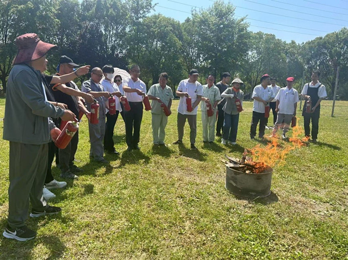 随后,消防科工作人员详细讲解了干粉灭火器的灭火原理及操作方法,并对如何使用室外灭火栓进行了培训。在理论培训结束后,消防科工作人员组织食堂员工进行了灭火器的现场演练。