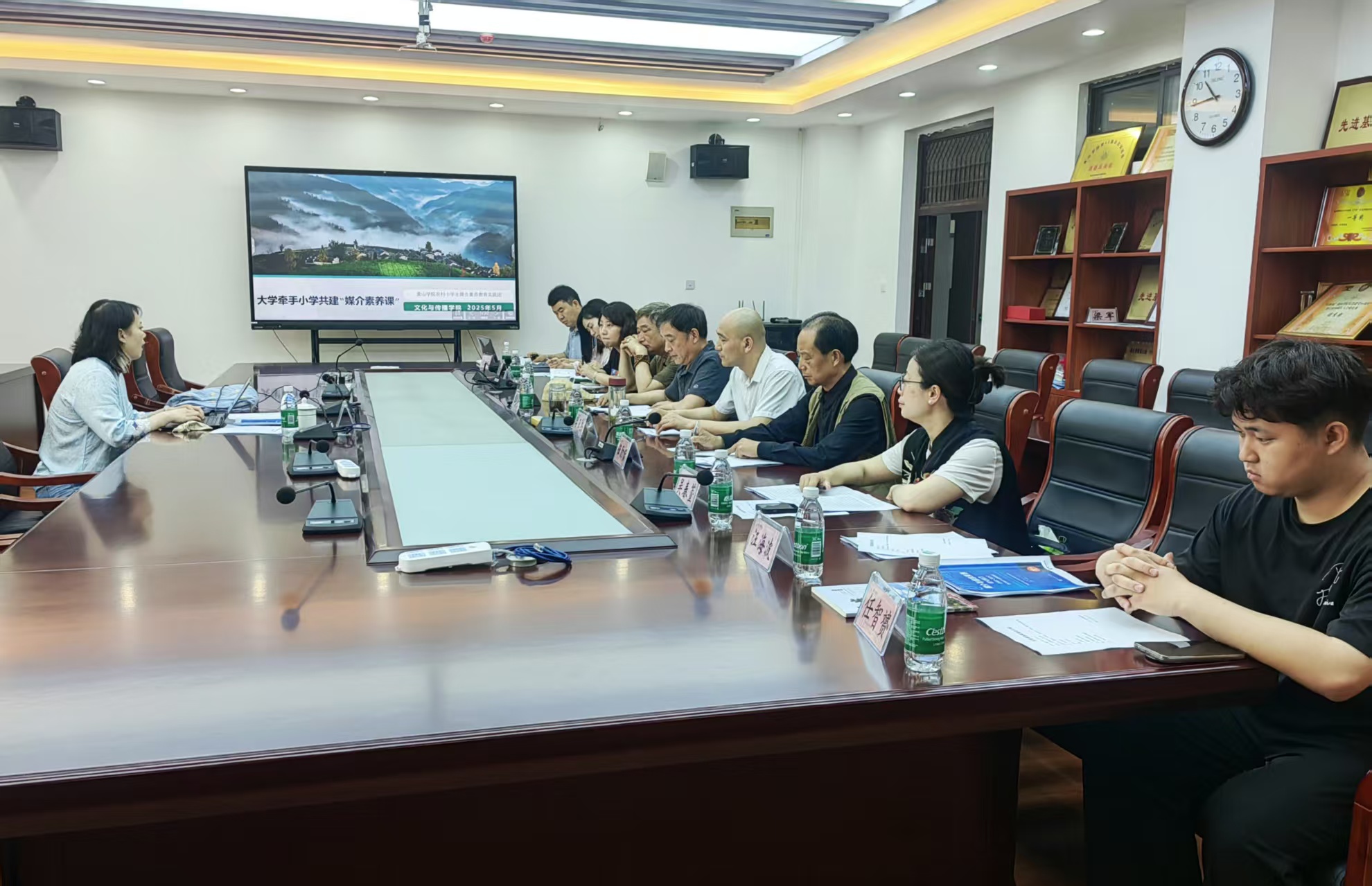路善全代表学院致欢迎词。他表示,十年来,文化与传播学院师生坚持开展乡村儿童媒介素养教育,持续与临溪小学等乡村学校合作,构建了长久的媒介素养教育一体化实践育人体系,让师生在传播知识的过程中感受传统文化魅力,为乡村振兴贡献力量。他期待通过此次项目申报,获得基金会的支持,助力学院媒介素养教育迈向新台阶。