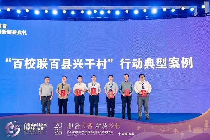 5月18日,由安徽省乡村建设高校联盟组织的“百校联百县兴千村”行动典型案例颁奖仪式在安徽财经大学举行。我校作为全省六所受邀高校之一,发展规划与社会合作处有关负责人代表学校出席仪式并领奖。