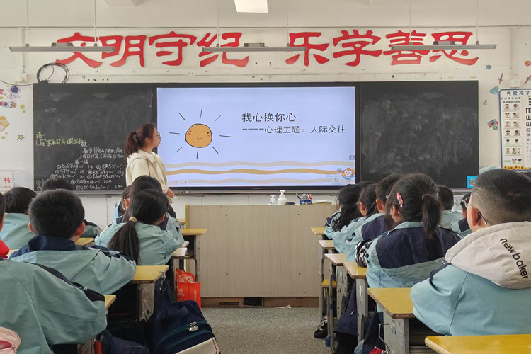 在屯溪龙山实验小学,学院教师带领大学生志愿者针对小学生的认知发展水平和特点,开展“真诚交往、我心换你心”主题心理健康课。通过趣味性的课堂互动,让同学们绘画和制作个性化名片,向同学介绍自己的以及自己朋友的兴趣爱好、性格特点。引导学生正确认识自我并发现同伴的价值,在团队合作中体会友谊的真谛。
