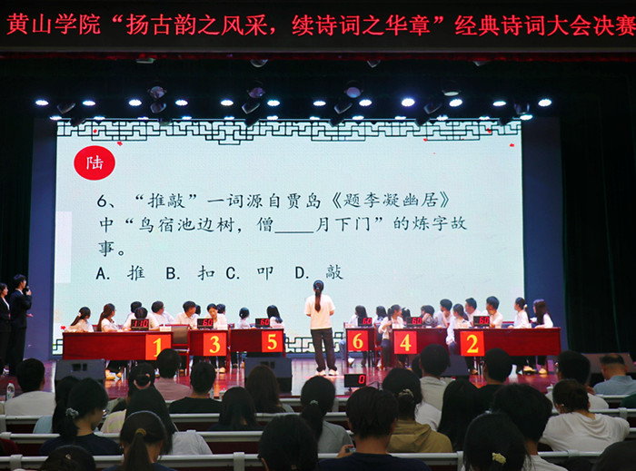 活动自启动以来便备受关注,各学院学生踊跃报名,经过初赛笔试选拔,最终六支学院代表队脱颖而出,成功晋级决赛。决赛设置“群英荟萃”“谁与争锋”和“孤注一掷”三个环节,采用现场答题的方式,设置了必答题、抢答题等多个环节,全面考察选手们对诗词的背诵、理解和运用能力。