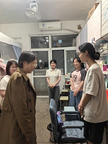 本次走访工作覆盖学院各年级学生宿舍,吕顺清书记一行走访男生宿舍,潘健院长一行走访女生宿舍,与同学们进行深入交流。走访过程中,详细询问学生课程学习进度、专业知识掌握情况,针对学生提出的课程难点、实验操作困惑等问题现场答疑解惑,并结合学科特点指导学生制定科学的学习计划,鼓励学生积极参与学术研究与实践活动,提升专业素养与创新能力。此外,就宿舍生活环境与设施状况进行调研,认真记录学生反映的问题,诸如电压不稳定、设施维修不及时等问题,并表示将形成专项台账,协调相关部门尽快落实整改,切实保障学生良好的生活条件。同时,通过亲切的谈心谈话,深入了解学生情绪动态与心理诉求,积极普及心理健康知识,引导学生树立正确的心理健康观念,掌握科学的情绪调节方法,筑牢心理健康防线。