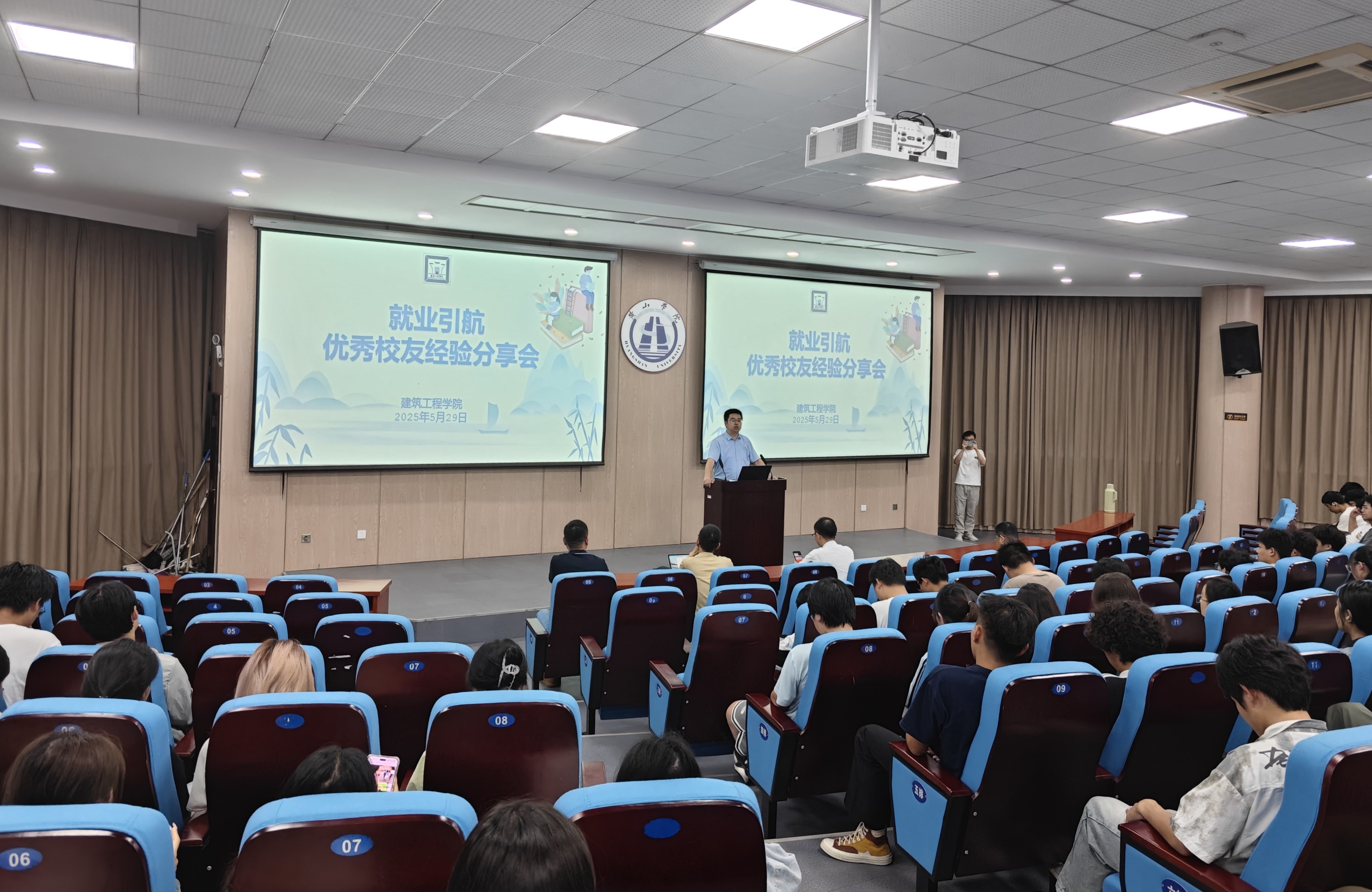 5月29日晚7点,建筑工程学院在文端楼一楼报告厅举办“就业引航之优秀校友经验分享会”。2007级土木专业校友韩俊、2006级建筑学专业校友徐驰受邀返校,为同学们分享职业发展经验,学院相关负责人、专业教师代表以及全体2024级同学参加分享会。