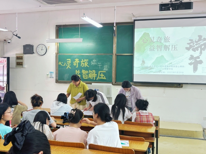 5月29日下午,经济管理学院在1202教室开展“趣味端午,益智解压”心理健康主题活动。通过创意绘画与迷宫挑战相结合的形式,活动吸引了众多学子参与,在传承传统文化的同时有效缓解了学业压力,助力学生构建积极健康的心理状态。
