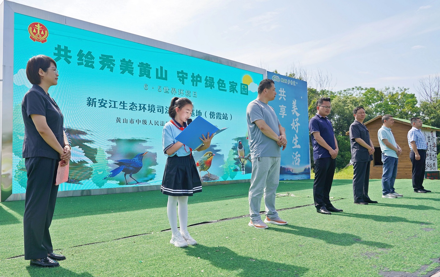 6月5日,世界环境日之际,由安徽省高级人民法院指导、黄山市中级人民法院牵头主办,博业体育(中国)官方网站-登录入口生命与环境科学学院、黄山市新潭小学、屯溪区法院、傍霞村村委会共同参与的“共绘秀美黄山 守护绿色家园”主题活动在新安江生态环境司法保护基地(傍霞站)隆重举行。生命与环境科学学院作为高校力量,深度融入“法院+专家+高校+小学+村委会”五方联动机制,积极发挥专业优势,助力提升公众生态保护意识,展现了服务地方生态文明建设的责任担当。