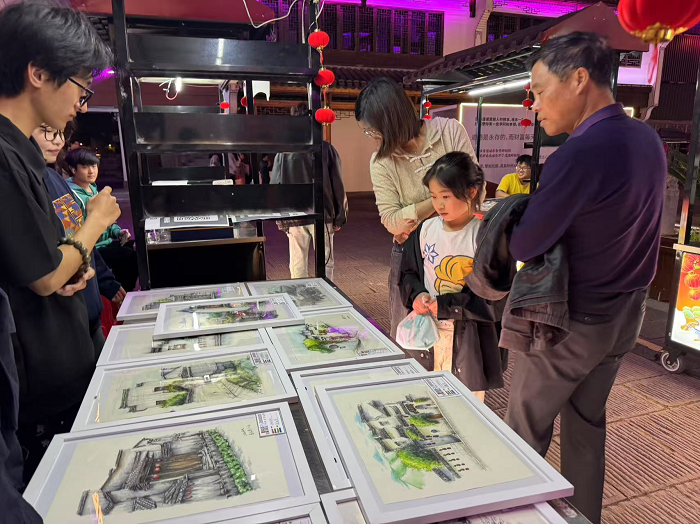 艺术学院学生围绕徽州建筑、非遗技艺、田园风光等元素,创作了水墨文创、陶土工艺品、非遗漆器等系列作品。其中,以“探访别样徽州”为灵感设计的各类油画、手绘折扇和手作茶具等作品备受青睐。“我们希望通过‘传统符号+现代设计’的表达,让徽文化以更鲜活的方式走进大众生活。”艺术学院学生陈实表示。