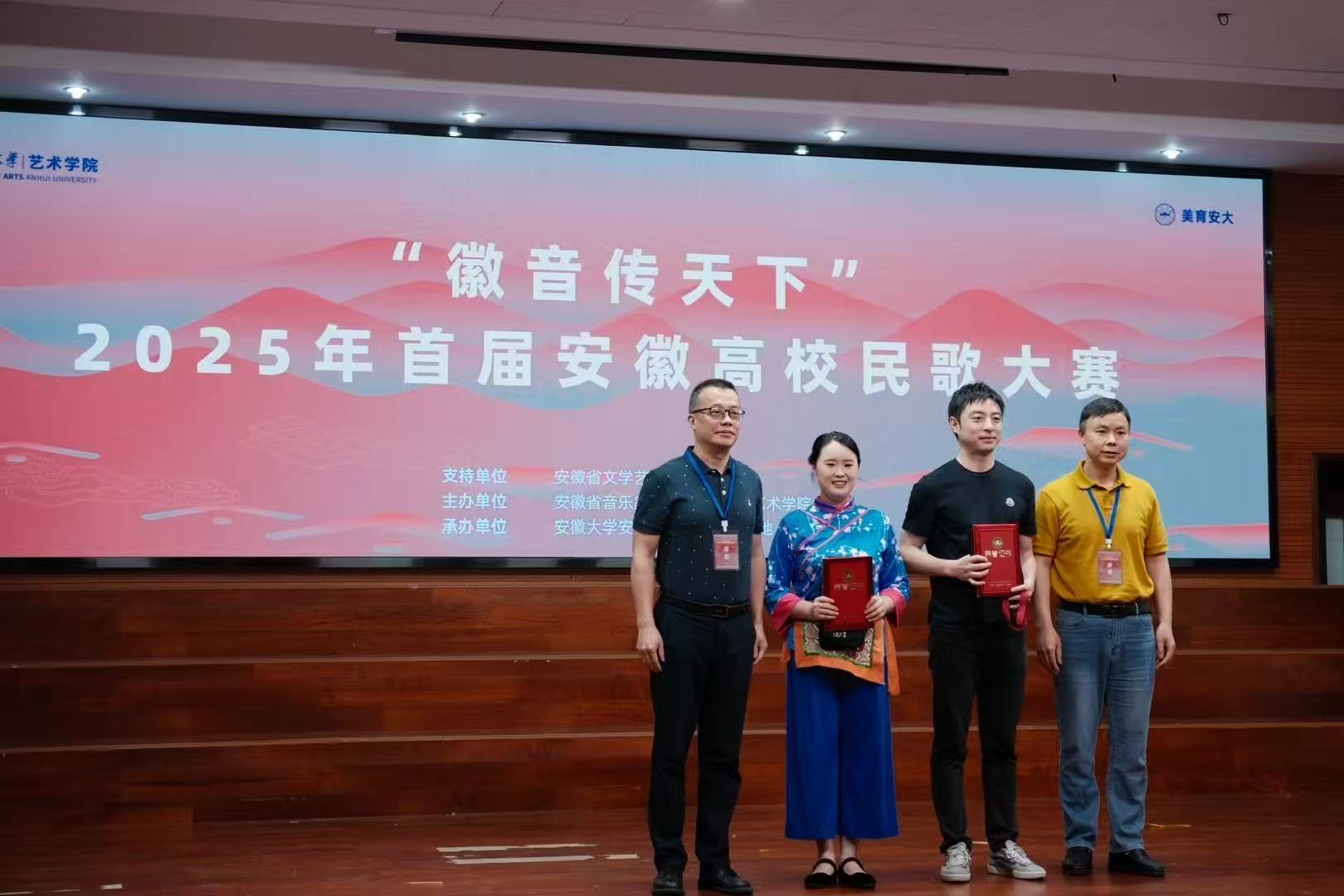 6月11日,“徽音传天下”首届安徽高校民歌大赛决赛在安徽大学音乐厅举行,来自安徽艺术学院、安徽大学、安徽师范大学等10所高校的学子齐聚一堂,以精湛的演绎,将 30 首精心遴选的安徽民歌作品搬上舞台。我校艺术学院孙寅舟、徐天维两位老师指导的女生小合唱《数麻雀》以全省第二名的优异成绩斩获银奖。