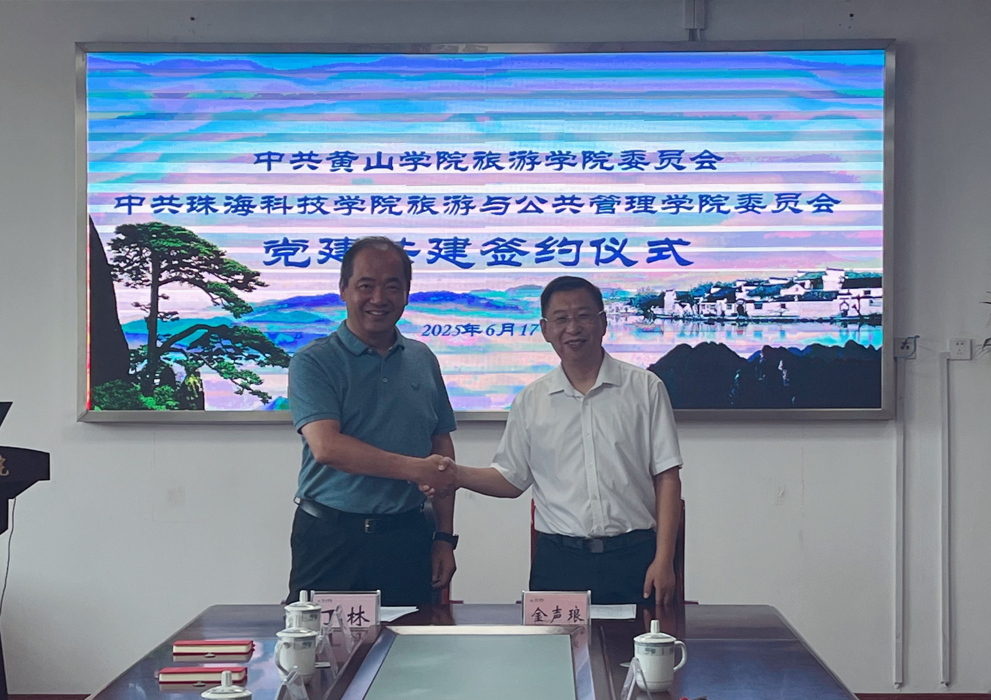 会上,金声琅、丁林分别代表博业体育(中国)官方网站-登录入口旅游学院和珠海科技学院旅游与公共管理学院举行党建共建签约仪式。