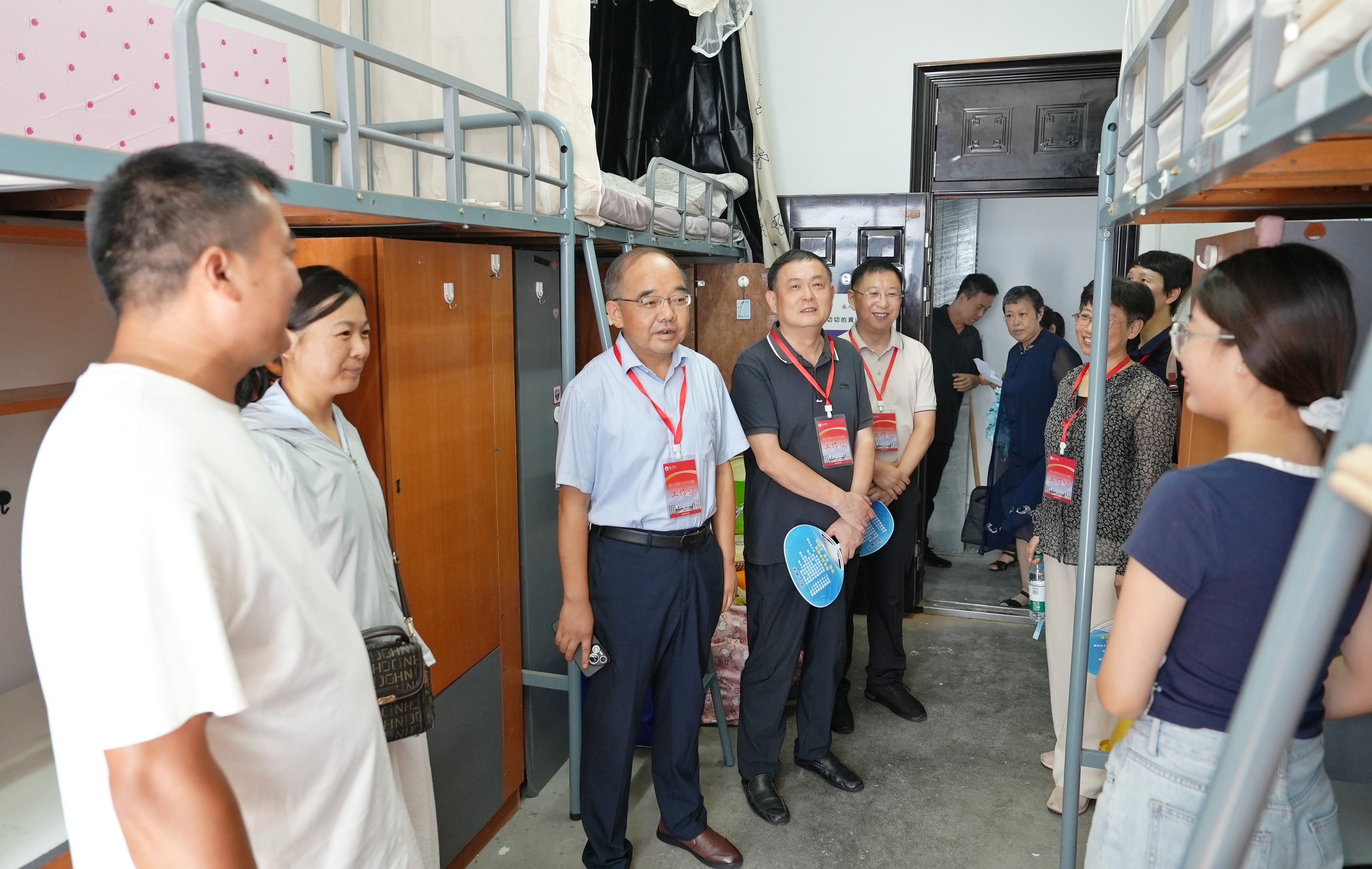 在学生餐厅,校领导重点检查环境卫生、原材料采购渠道、饭菜品质及食品安全管理,要求工作人员务必守住安全底线,保障学生“吃得好、吃得放心”;在新生宿舍,校领导实地察看宿舍生活环境,与新生及家长亲切交流,勉励新生尽快转变角色,在集体生活中学会团结友爱、互帮互助,快速熟悉校园环境、适应大学生活节奏。校领导向家长表达诚挚谢意,感谢大家对学校的信任和支持,表示学校将全力为学生创造优良的学习与生活条件,保障每位学生顺利完成学业。