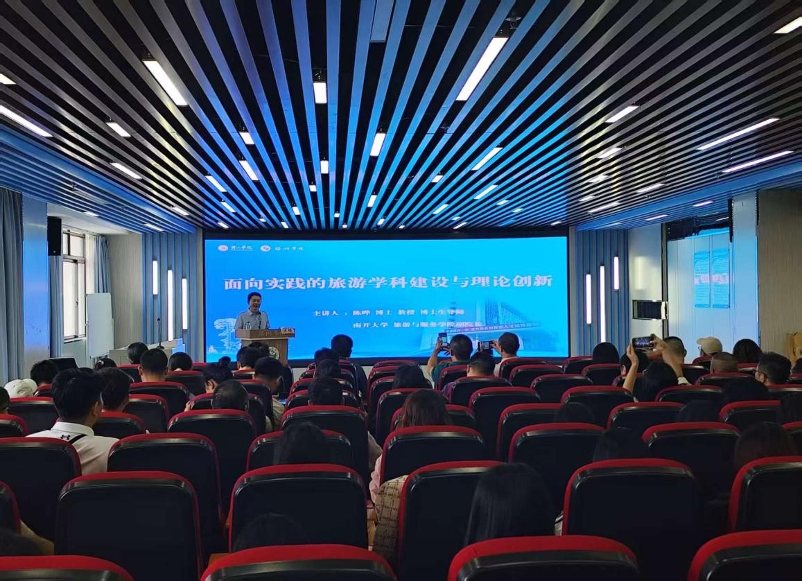 报告会上,陈晔教授结合当前旅游学科发展痛点,指出旅游教育须紧密对接行业实践,强化产教融合。他分享了南开大学在MTA移动课堂、文旅创新工坊、主题研学等方面的实践探索,强调应通过“以赛促学”、校企合作等方式提升学生综合能力。此外,还提出旅游理论研究应立足中国情境,倡导案例研究、扎根理论等探索性方法,推动具有本土特色的理论创新,并介绍了其在“幸福产业”领域的前沿研究,为学科发展提供了新视角。