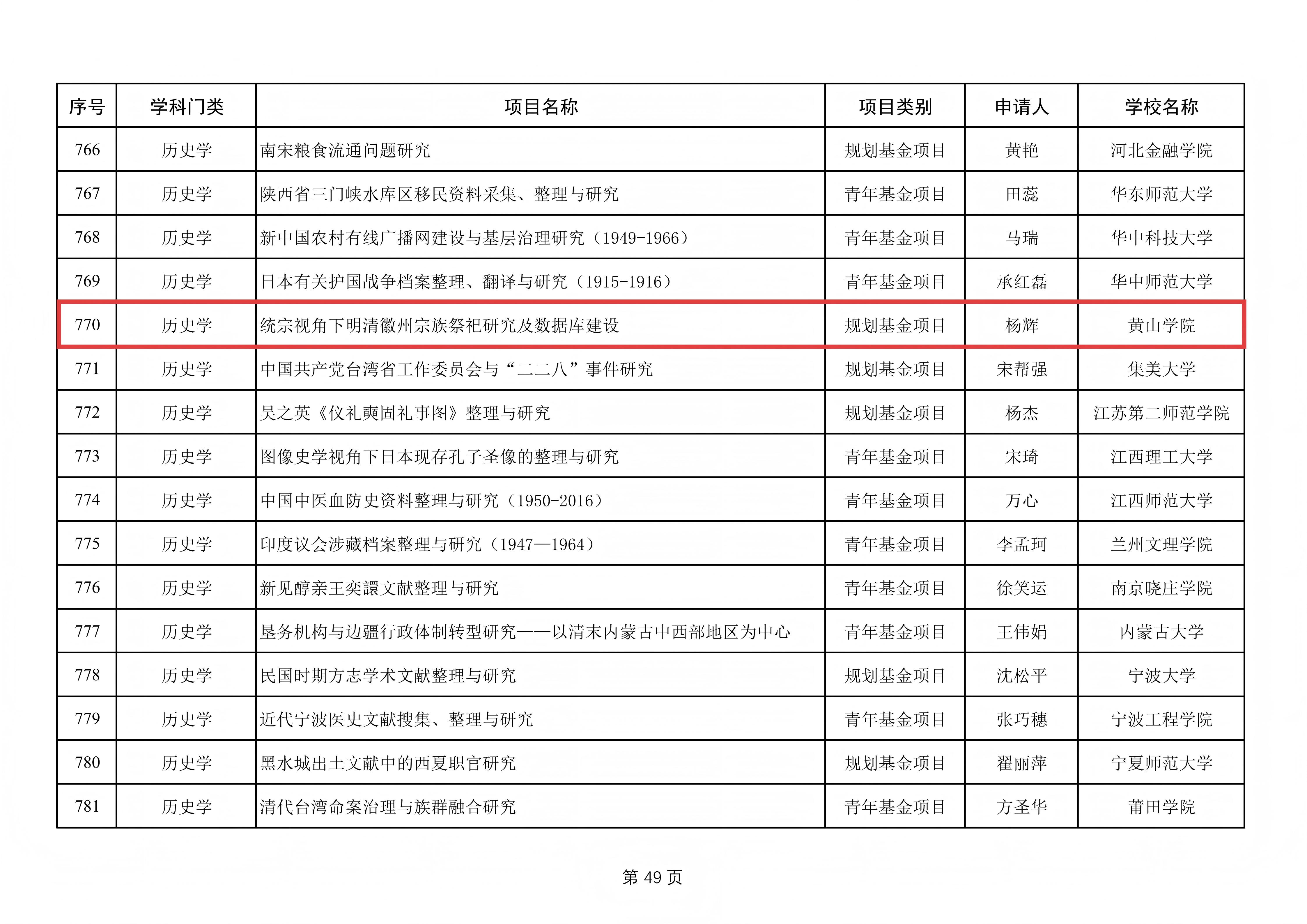 历史学 | 统宗视角下明清徽州宗族祭祀研究及数据库建设 | 规划基金项目 | 杨辉 | 博业体育(中国)官方网站-登录入口 |