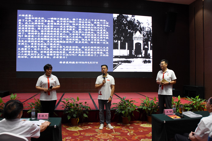 7月20 日上午,通过主持人与革命烈士王佐曾孙王华文、中组部原副部长曾志之曾孙蔡军的互动,为学员讲述历史故事,再现了老一辈革命家坚定信仰,一心向党的光辉形象。革命先烈不怕牺牲无私奉献的精神深深地感动着每位学员。