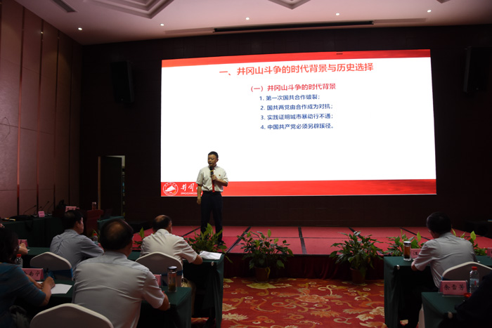 7月18日下午,井冈山大学教授李忠为培训班学员作题为《井冈山斗争与井冈山精神》的专题教学。