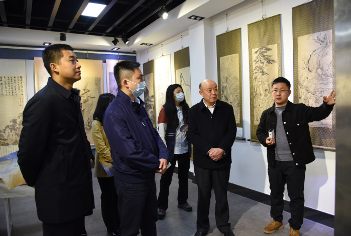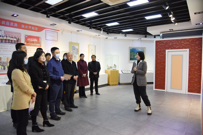 在徽州美术馆,艺术学院党政负责人等向调研评估组一行介绍了艺术学院培养时代新人、造就大国良师的实践,重点介绍了一流专业建设、非遗技艺传承、学科大赛参与、新安画派发展、徽文化元素进艺术创作等。调研组一行在一幅幅作品、一件件实物前驻足流连,细细询问,对青年大学生的创新创意啧啧称赞,认为艺术学院的人才培养具鲜明特色。