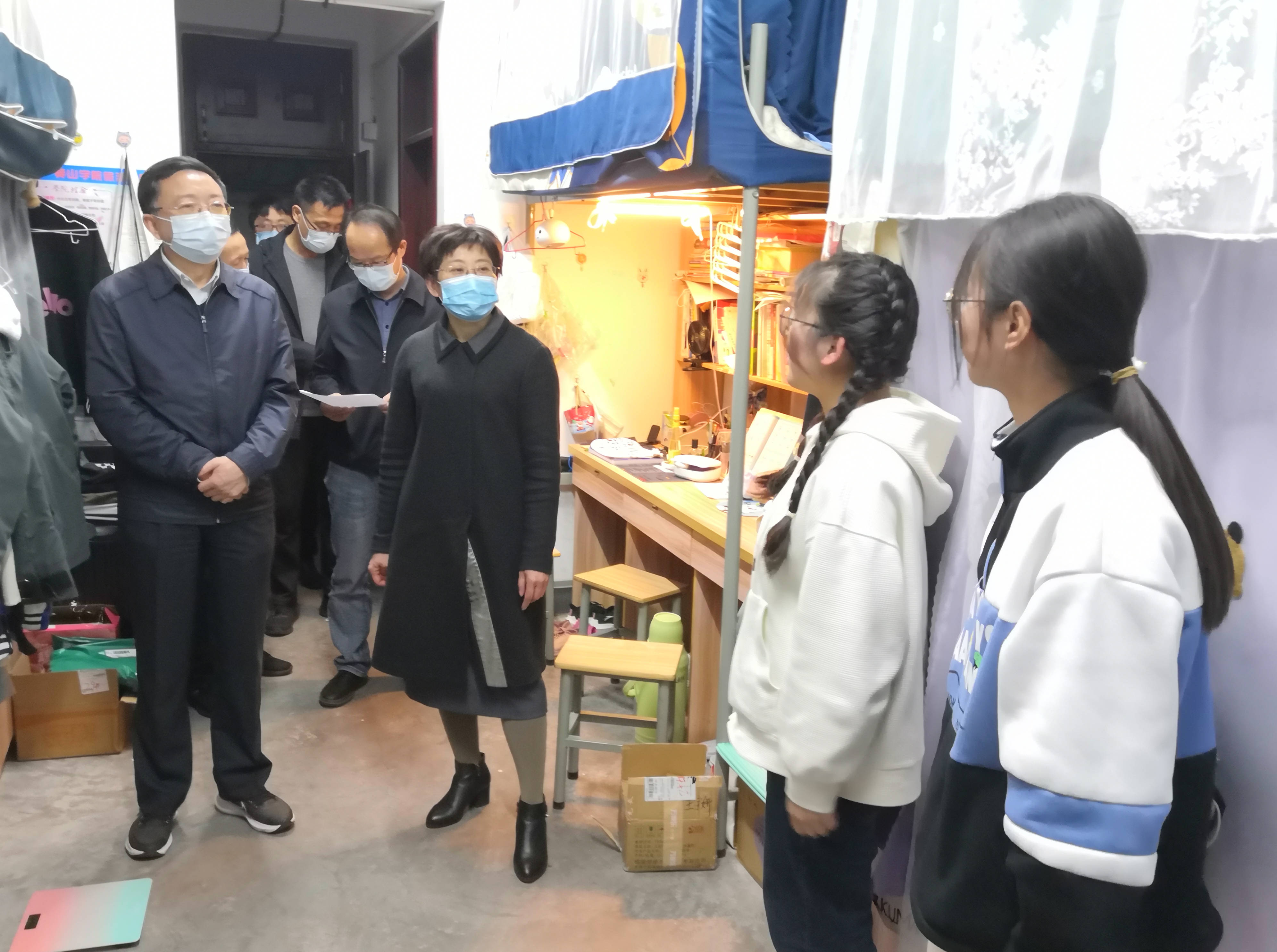 在学生宿舍,汪枫一行随机走访了旅游学院、生命与环境科学学院、文化与传播学院学生宿舍,与同学们亲切交流,详细了解大家在学习、生活等方面存在的困难和需求,征求他们对学校教育教学、管理服务等方面的意见建议。汪枫强调,当前校园疫情防控形势严峻,希望同学们要严格遵守学校各项疫情防控规定,积极配合学校疫情防控工作,做到不聚集、不扎堆,注意个人卫生,保持宿舍干净整洁,切实做好个人防护。汪枫勉励大家要合理安排时间,夯实专业基础,强化专业技能,确定发展方向,提升综合素质。同学们对校领导走访表示感谢,表示一定严格遵守学校疫情防控各项规章制度,以饱满精神面貌和积极的态度投入到学习生活中,树立远大目标,实现更高人生梦想。