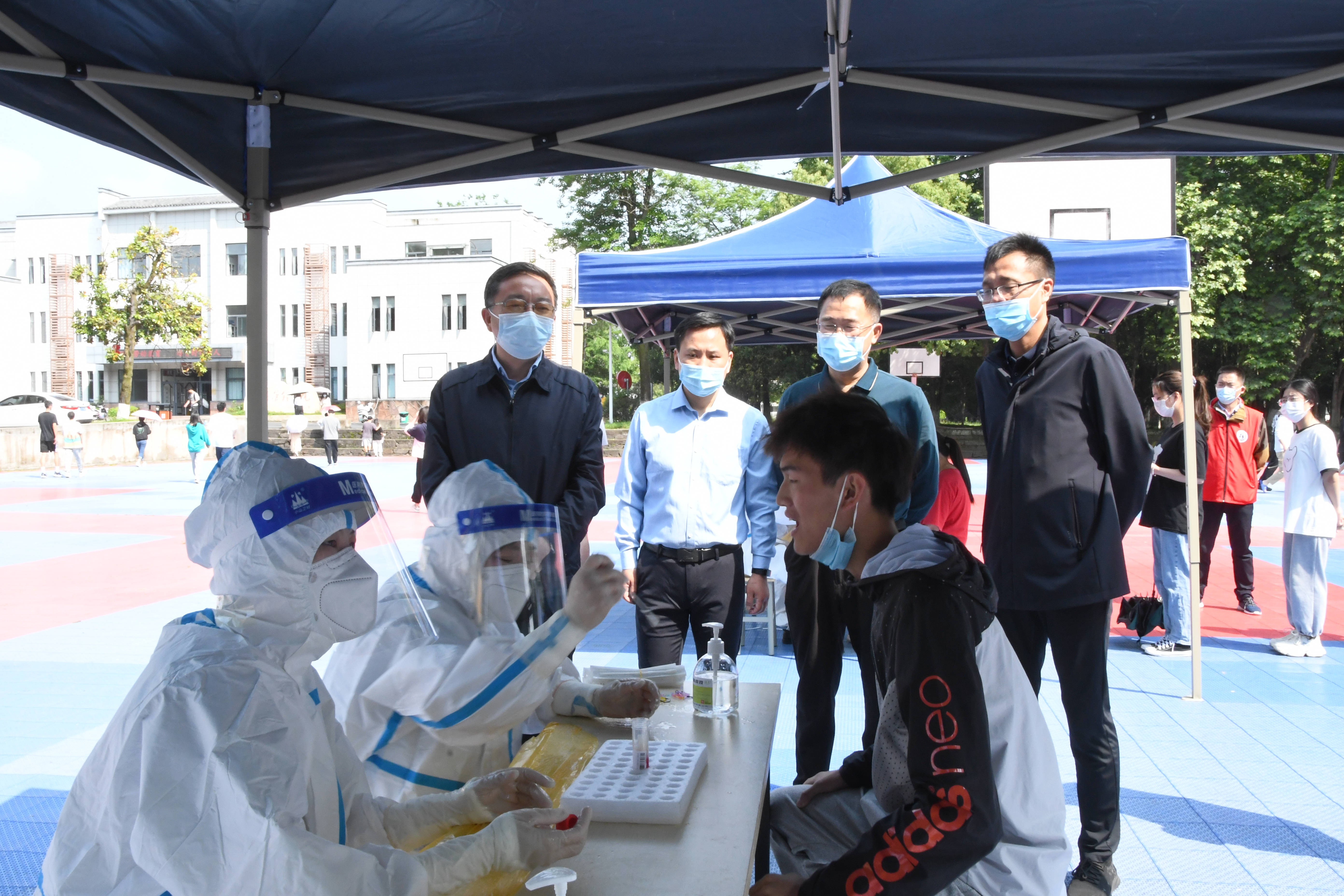 在横江校区核酸检测点,汪枫看望了正在值守的校医院工作人员和师生党员志愿者,对他们牺牲周末休息时间,任劳任怨地无私奉献精神表示感谢和称赞,叮嘱他们一定要注意劳逸结合,注意保持身体健康和乐观心态。汪枫详细询问了核酸检测工作开展情况,并听取了关于核酸检测工作的汇报。他指出,核酸检测是疫情防控工作的重要环节,要严格落实检测标准,优化检测流程,科学筹划安排,协同高效做好疫情防控和核酸检测工作,全力守护好师生的生命安全和身体健康。