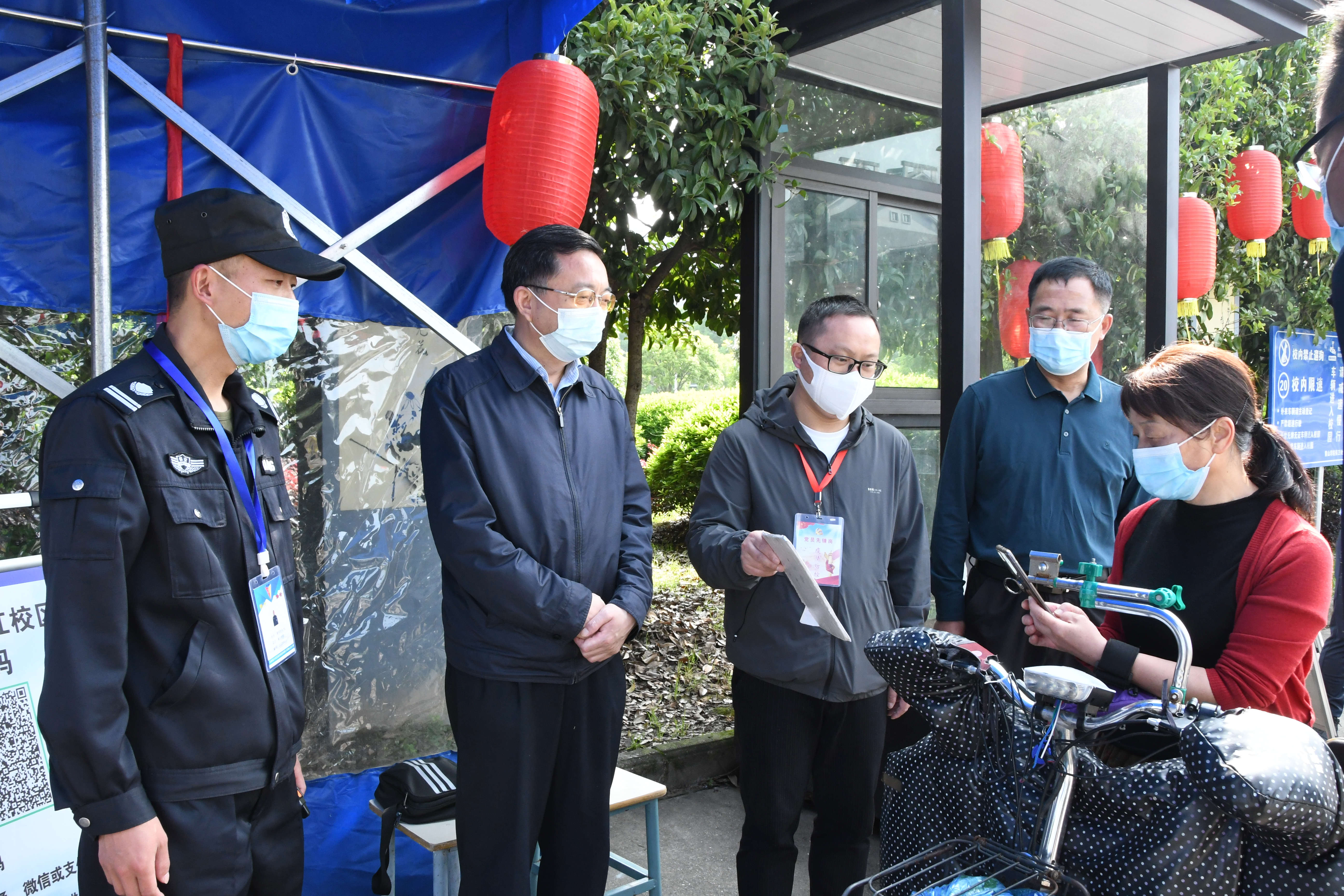 在率水和横江校区大门门岗,汪枫详细了解学校常态化疫情防控和安保工作落实情况,听取相关负责人对近期疫情防控工作开展情况的汇报,充分肯定了校门值守和安全保卫工作。他叮嘱各门岗工作人员要加强值守,严格落实进出登记、车辆管控、口罩佩戴、体温检测、“两码一证”查验等校门管控工作,并随时根据学校防疫政策调整管控措施,筑牢校园安全第一道防线。同时,对义无反顾地坚守在校门和党员先锋岗的值守人员、师生志愿者表示亲切慰问和真诚感谢。汪枫要求,全校上下要提高思想认识,切实在思想上政治上行动上同党中央保持高度一致,坚持“动态清零”总方针不动摇,坚定必胜信念不含糊,坚守校园阵地不懈怠,齐心协力抓实抓细疫情防控各项工作,构筑抵御病毒的严密防线。
