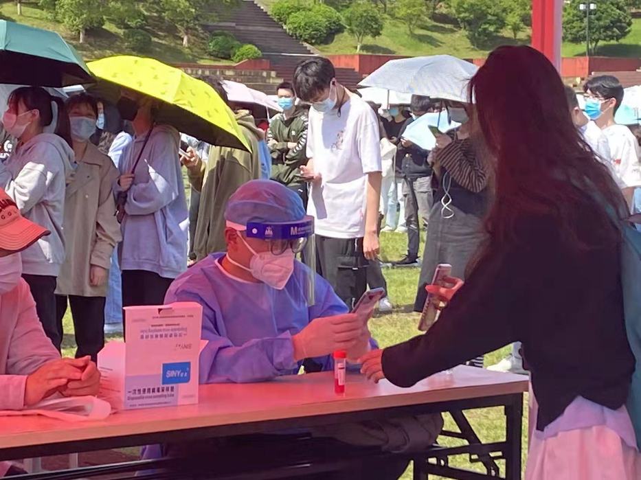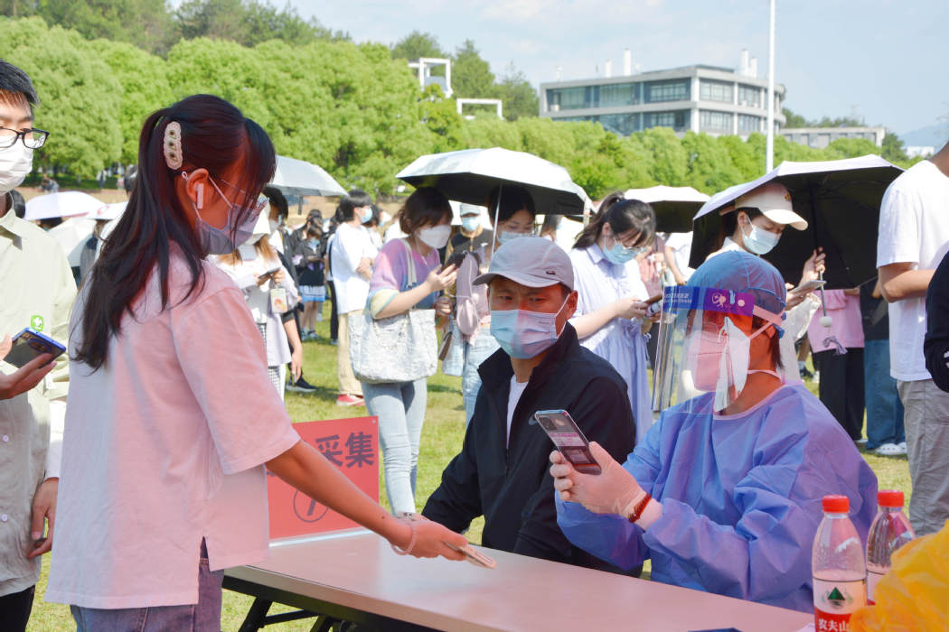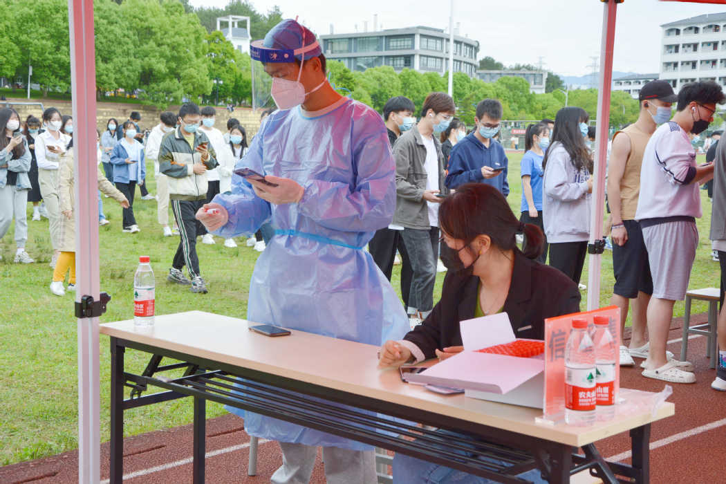 无独有偶。当下,正值毕业论文答辩季,外国语学院教师郭飞在忙于学生论文答辩的同时,也不愿错过参加志愿服务的机会。作为该院论文答辩小组组长,5月14日,在组织完成学生网上答辩之后,饭都没来得及吃就匆匆赶往率水校区田径场担任志愿者,负责核酸检测信息录入工作;5月16日,原本要带母亲和孩子去医院看病的他在接到召集志愿者的通知后,便又义不容辞地报了名。目前,他已经参与了4次核酸检测志愿服务工作,完成4000多人次的信息录入。“这是我应该做的,我们教育学生要舍小家为大家,在疫情防控的关键时期,作为教师,我们必须以身作则,以行示范。”寥寥数语,道出了无数教师的心声。