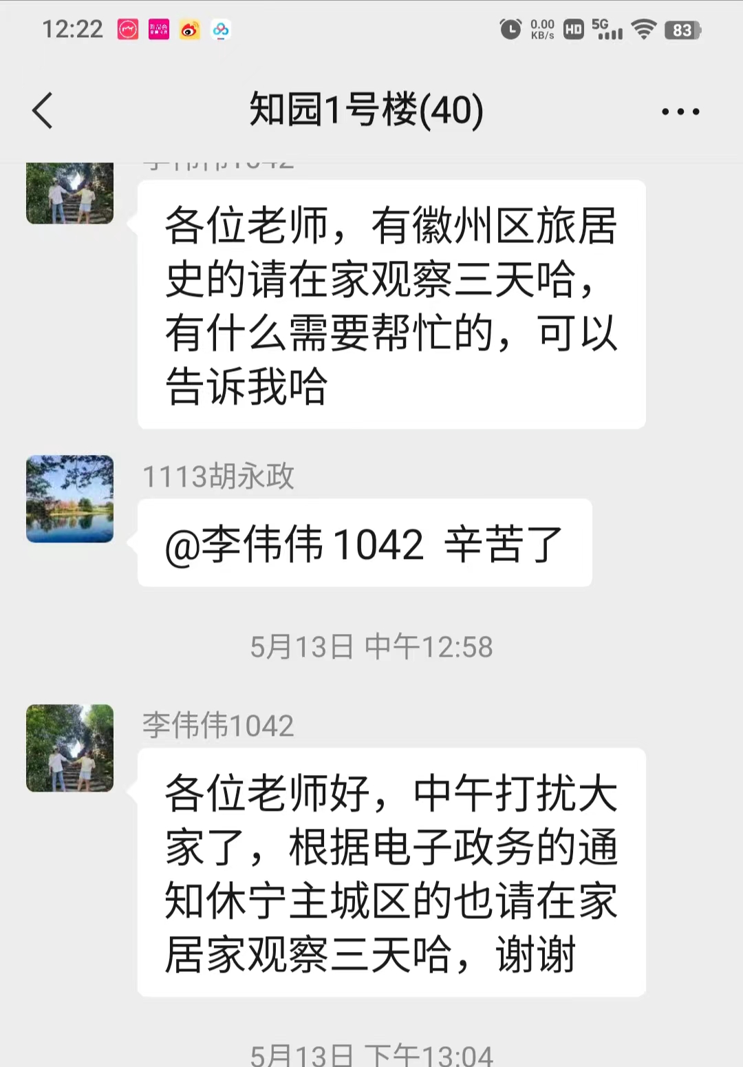“近期,家人是否有‘离黄’经历、家里是否有来访客人、家里是否有老人或婴幼儿需要特殊照顾……”看似简单的“楼长”两个字,却承载着满满的责任和关怀。楼长作为疫情防控“最后一米”的守护人。他们积极投身战“疫”一线,利用下班时间对楼栋住户详情进行地毯式摸排,建立数据精准、内容详实的人员信息台账,真正做到各类人员底数清、情况明、数据准。与此同时,楼长还承担着宣传防疫知识、人情化劝导、及时转发解读学校疫情防控相关通知要求、倾听教职工呼声、解决合理诉求等工作,彻底打通教职工在疫情当下生活中的痛点、难点、堵点,建起“上情下达、下情上传”的主通道,架起学校与教职工防疫的“连心桥”。