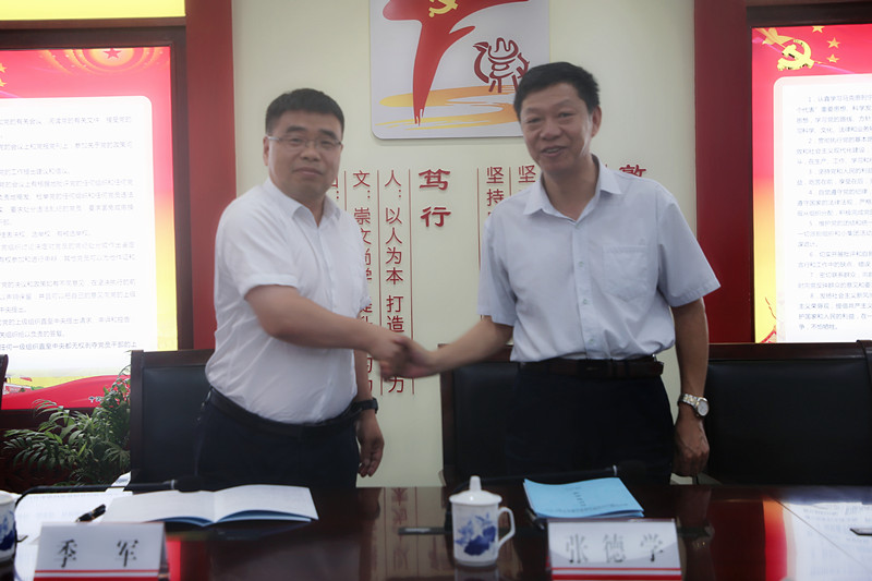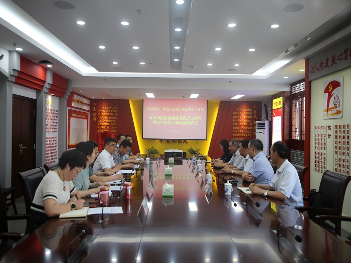 6月28日,我校数学与统计学院与中国人民银行黄山市中心支行签署黄山市高校金融素养提升工程合作备忘录并举行博业体育(中国)官方网站-登录入口实习基地揭牌仪式。校党委委员、副院长张德学,党委委员、教务处处长张小明,中国人民银行黄山市中心支行党委书记、行长季军,中国人民银行黄山市中心支行党委委员、副行长王和平,数学与统计学院领导班子及相关人员参加签约仪式。