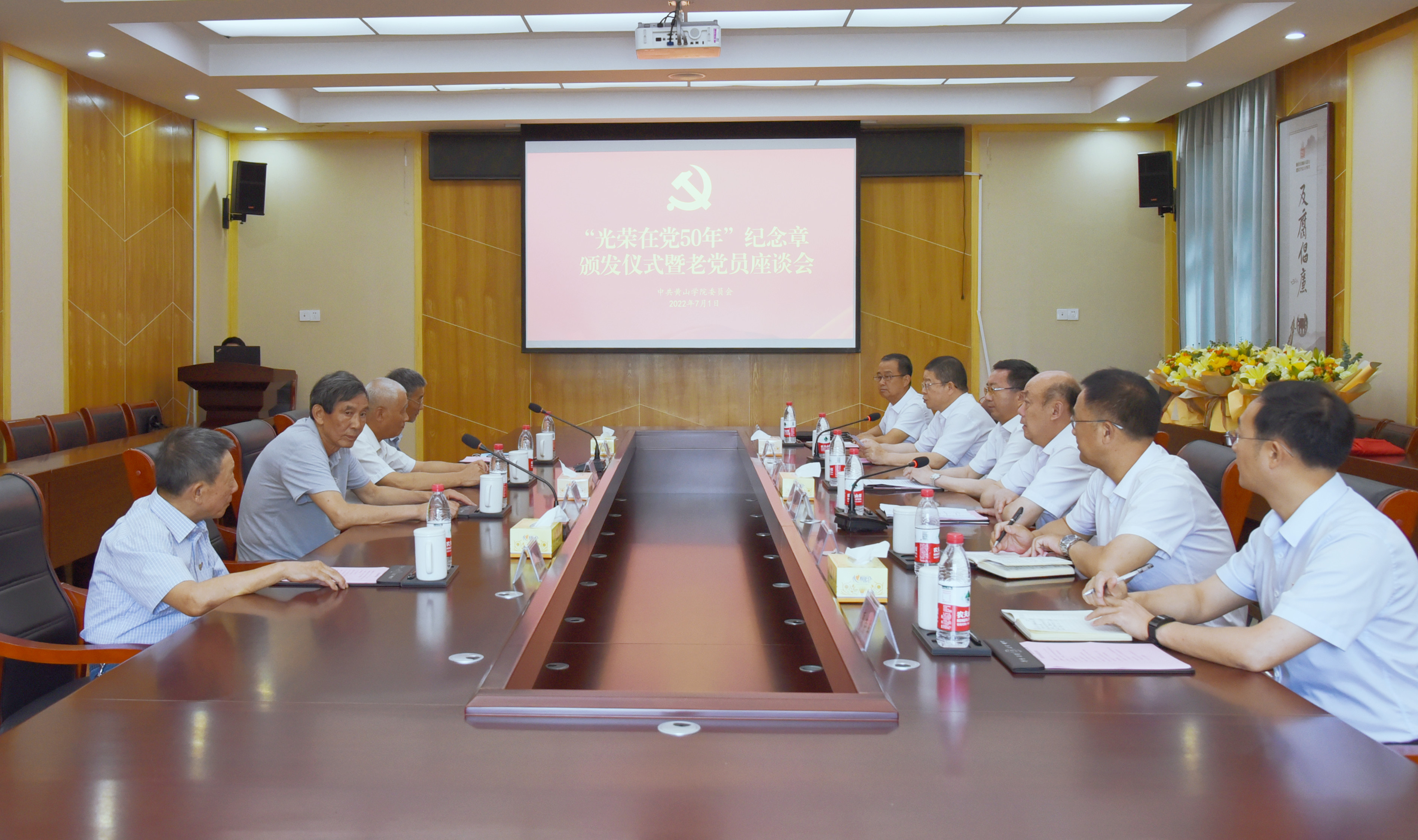 在热烈庆祝中国共产党成立101周年之际,7月1日上午,我校在横江校区举办“光荣在党50年”纪念章颁发仪式暨老党员座谈会。校党委书记汪枫、党委副书记胡家俊、办公室、组织部、宣传(统战)部、离退休工作处相关负责同志和“光荣在党50年”纪念章获得者代表参加了仪式,并开展了座谈。胡家俊主持会议。