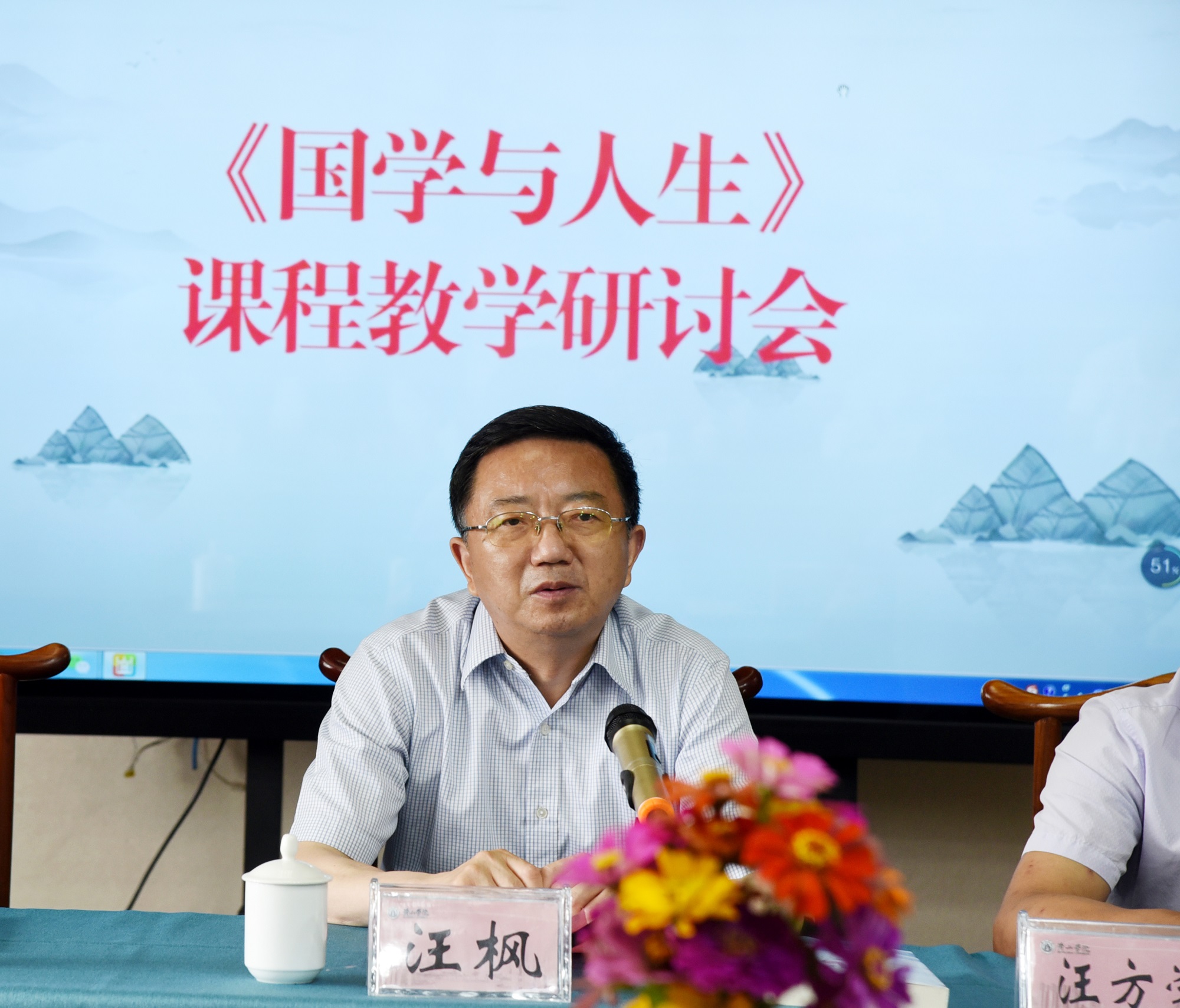 为进一步提高课程教学质量,弘扬优秀传统文化, 7月6日至8日,我校《国学与人生》课程教学组举行教学研讨会,校党委书记汪枫出席开幕式,文学院党政领导,《国学与人生》授课教师参加教学研讨会。
