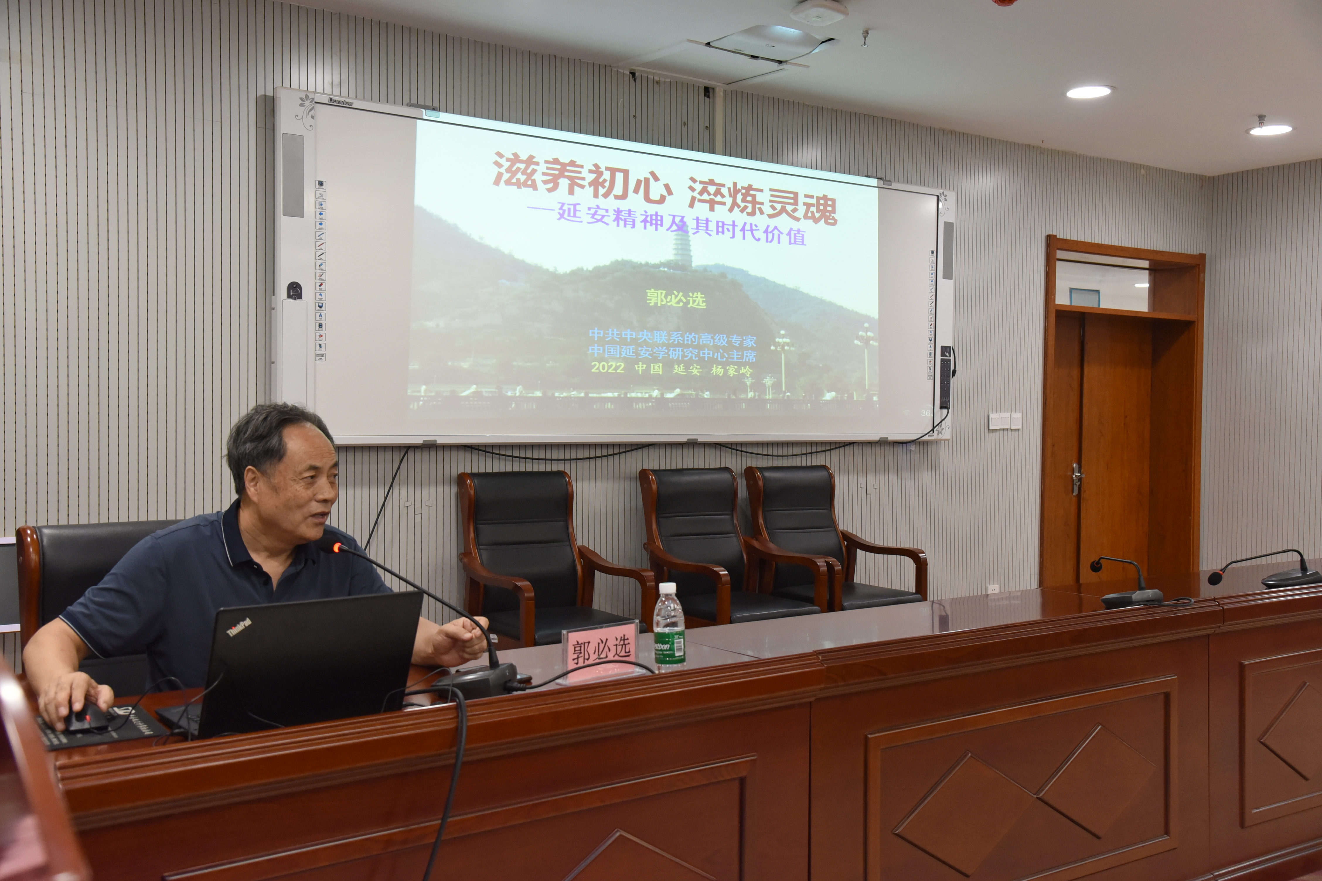 8月18日下午,培训班学员们聆听了延安大学马克思主义学院郭必选教授讲授的《延安精神及其时代价值》专题报告。报告深入阐述了延安精神产生的时代背景、内容体系和时代价值。报告从理想信念精神、实事求是精神、为人民服务精神、自力更生艰苦奋斗精神、团结民主精神、谦虚批评精神六个方面解读延安精神的本质和内涵。报告强调,延安精神是一种心劲,更是一种干劲,是伟大党和伟大人民的一种革命加拼命伟大劳动精神和生活哲学。