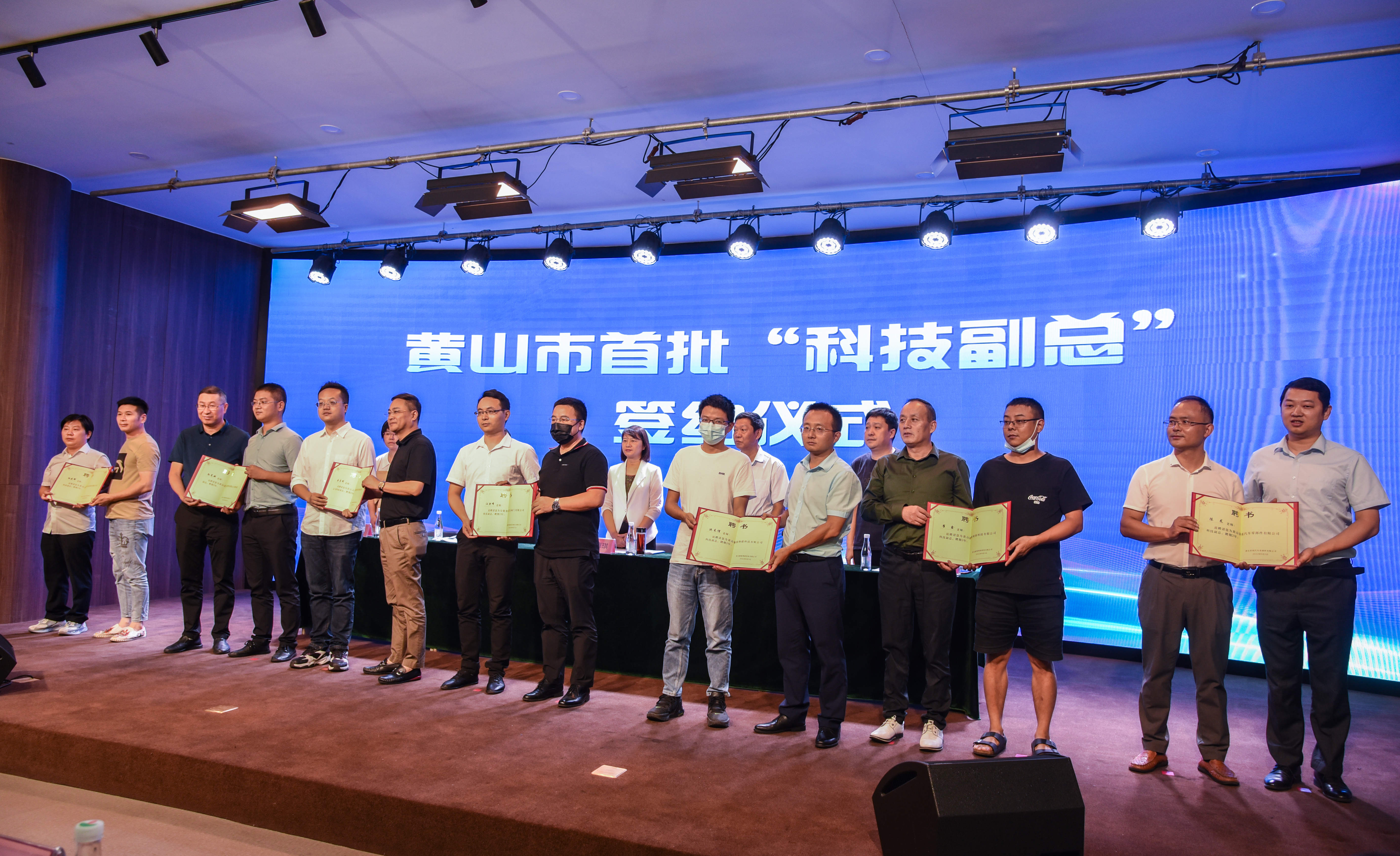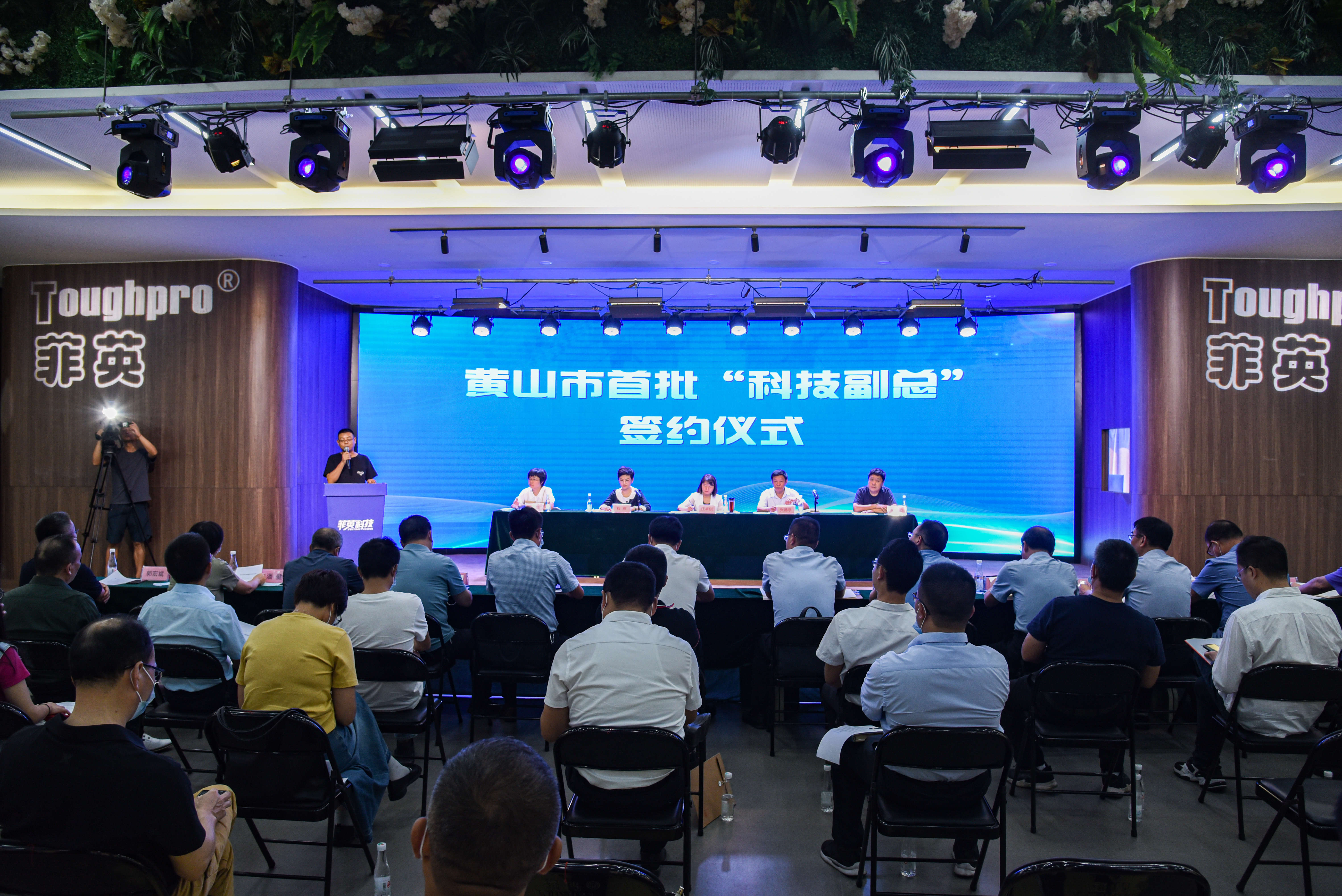 9月6日下午,我校7名博士教师与黄山菲英汽车零部件有限公司等7家企业在黄山菲英科技大楼举行黄山市首批“科技副总”签约仪式。校党委委员、副校长张德学、黄山市副市长江卓琪,市委组织部、市发改委、市科技局、市经信局、市人社局、市农业农村局负责同志,校人事处、科研处、相关学院负责人参加签约仪式。