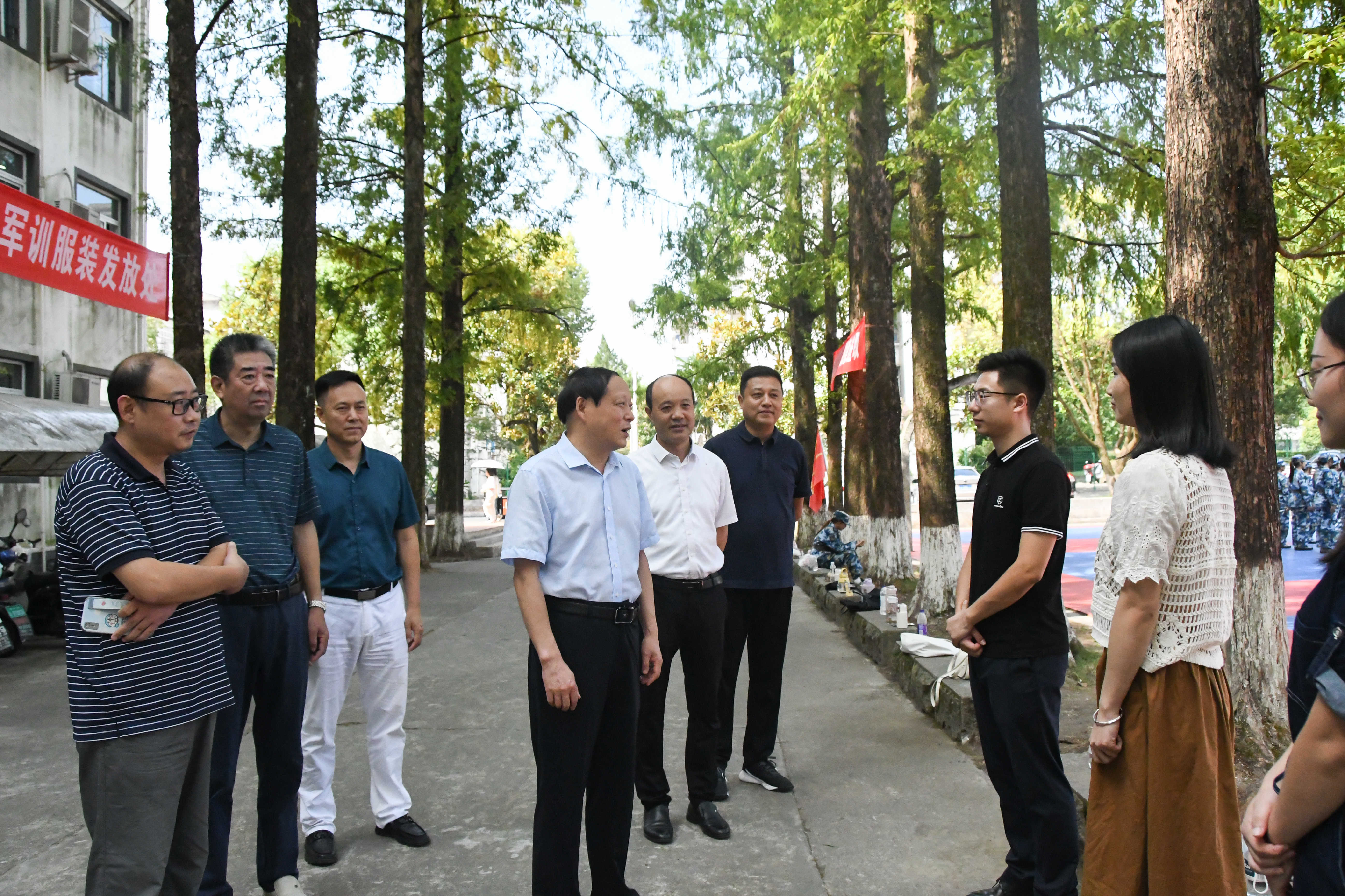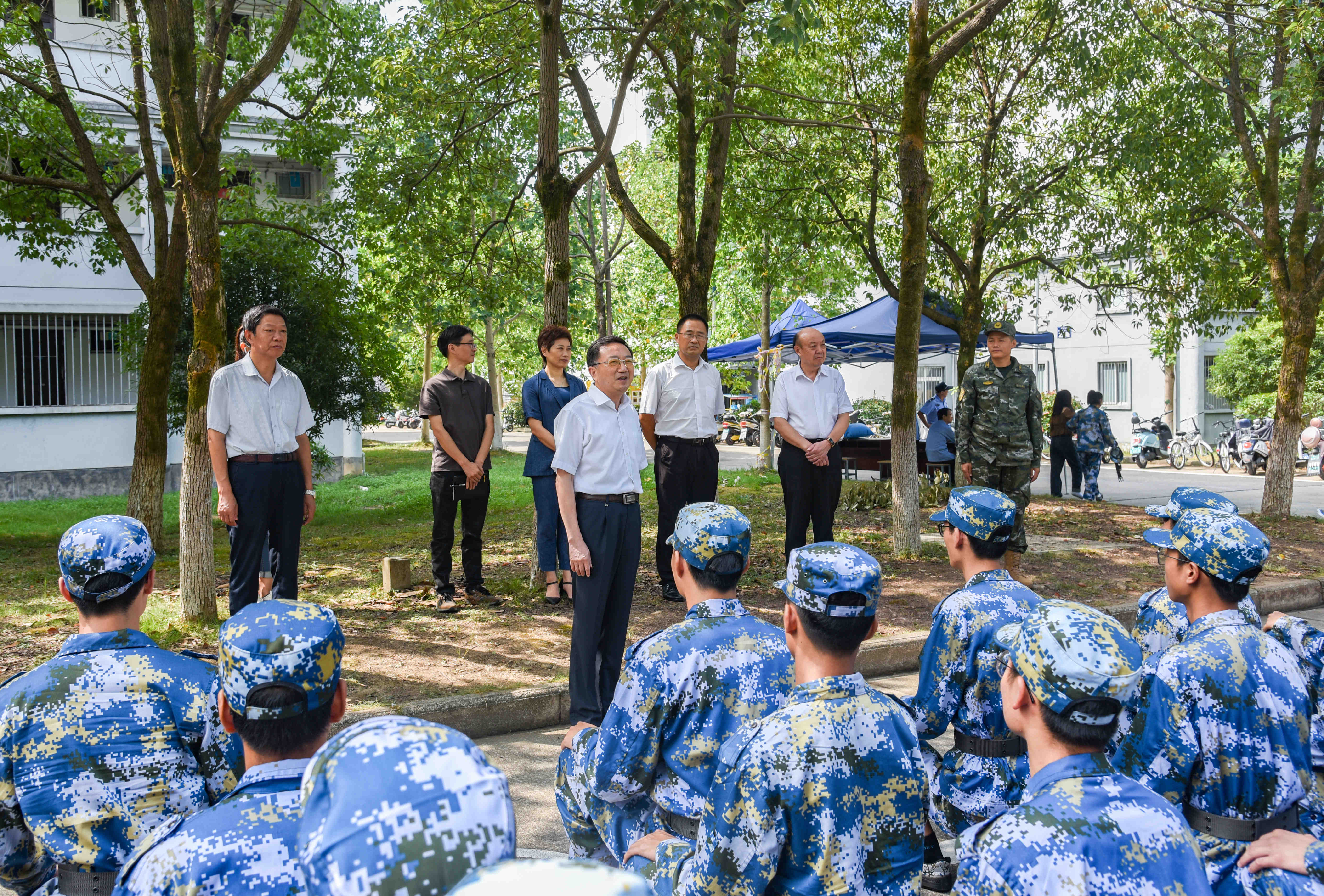 校领导代表学校对军训新生、承训教官表示慰问,感谢教官的辛苦付出,高度赞扬承训教官吃苦耐劳的精神品质、严谨扎实的工作作风以及按纲施训、严格施训、科学施训的工作态度,对同学们不畏辛苦、严格要求的军训态度表示肯定。并向教官和辅导员了解了军训基本情况,现场观看了学生训练,与学生亲切交谈,了解他们参训的感受。