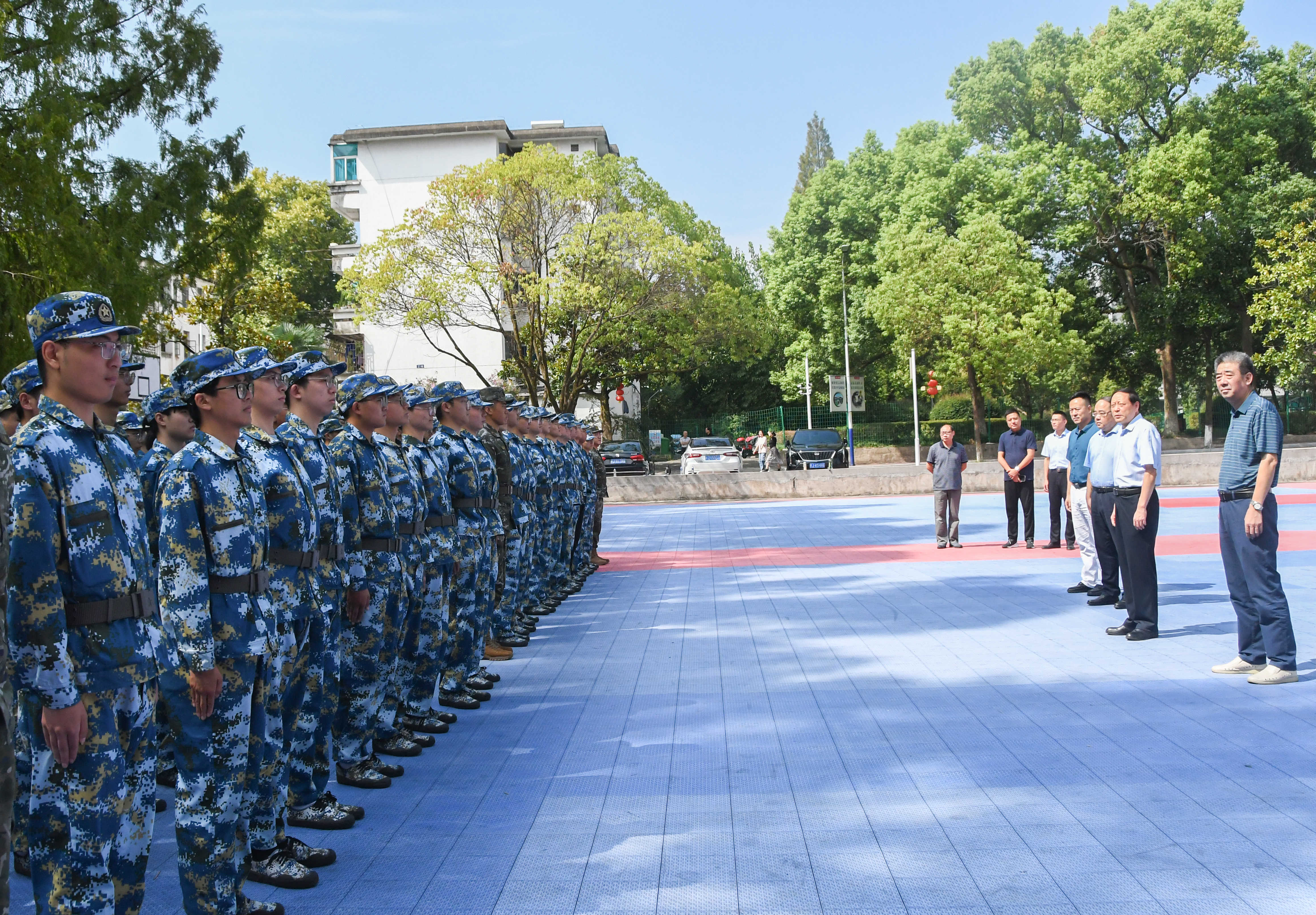 校领导强调,军训是新生入学后的第一课,是一种难得的人生体验,能够更好地培养同学们艰苦奋斗的优良品质,进一步激发大家的国防意识、纪律意识。希望每位同学能够充分认识本次军训的重要意义,在军训中不断努力奋进,提升自身综合素质;在军训中树立严明的纪律意识,培养军人般坚毅的品质;在军训中互相帮助,增强团队凝聚力,圆满完成大学生涯第一课。