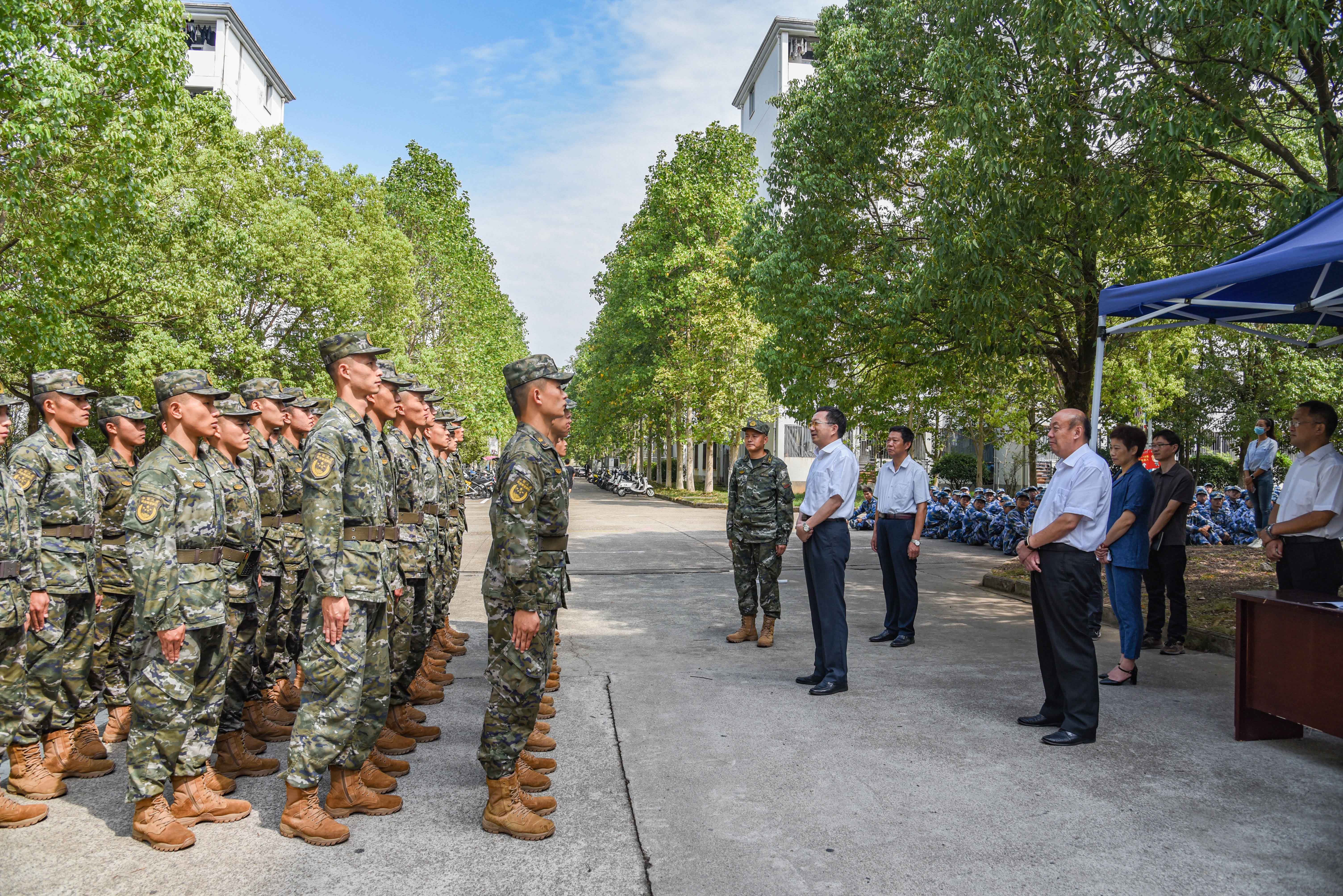 训练场上,2022级军训新生精神饱满、斗志昂扬。9月16日上午,校领导汪枫、李铁范、胡家俊、张德学、陈家祥在宣传部、学生处、教务处、武装部等部门负责人陪同下,分别到率水和横江两个校区看望慰问参加军训的2022级新生和武警承训教官。