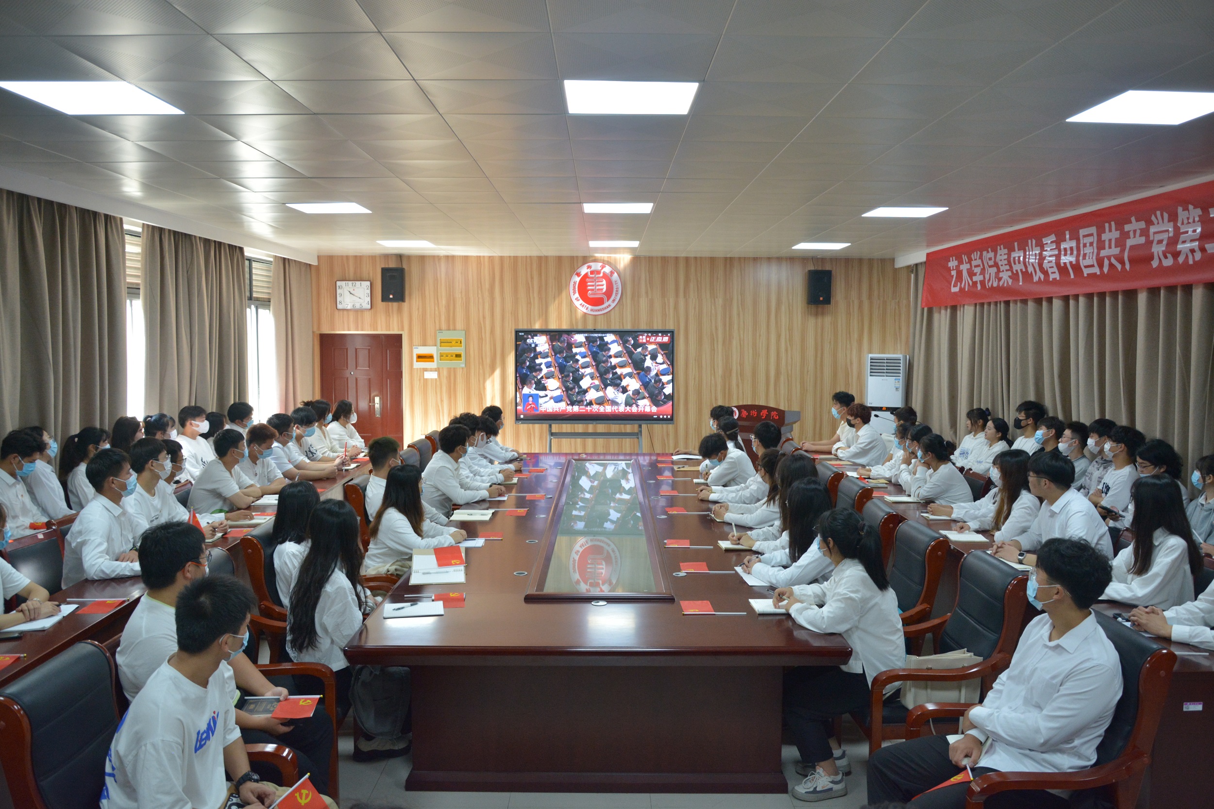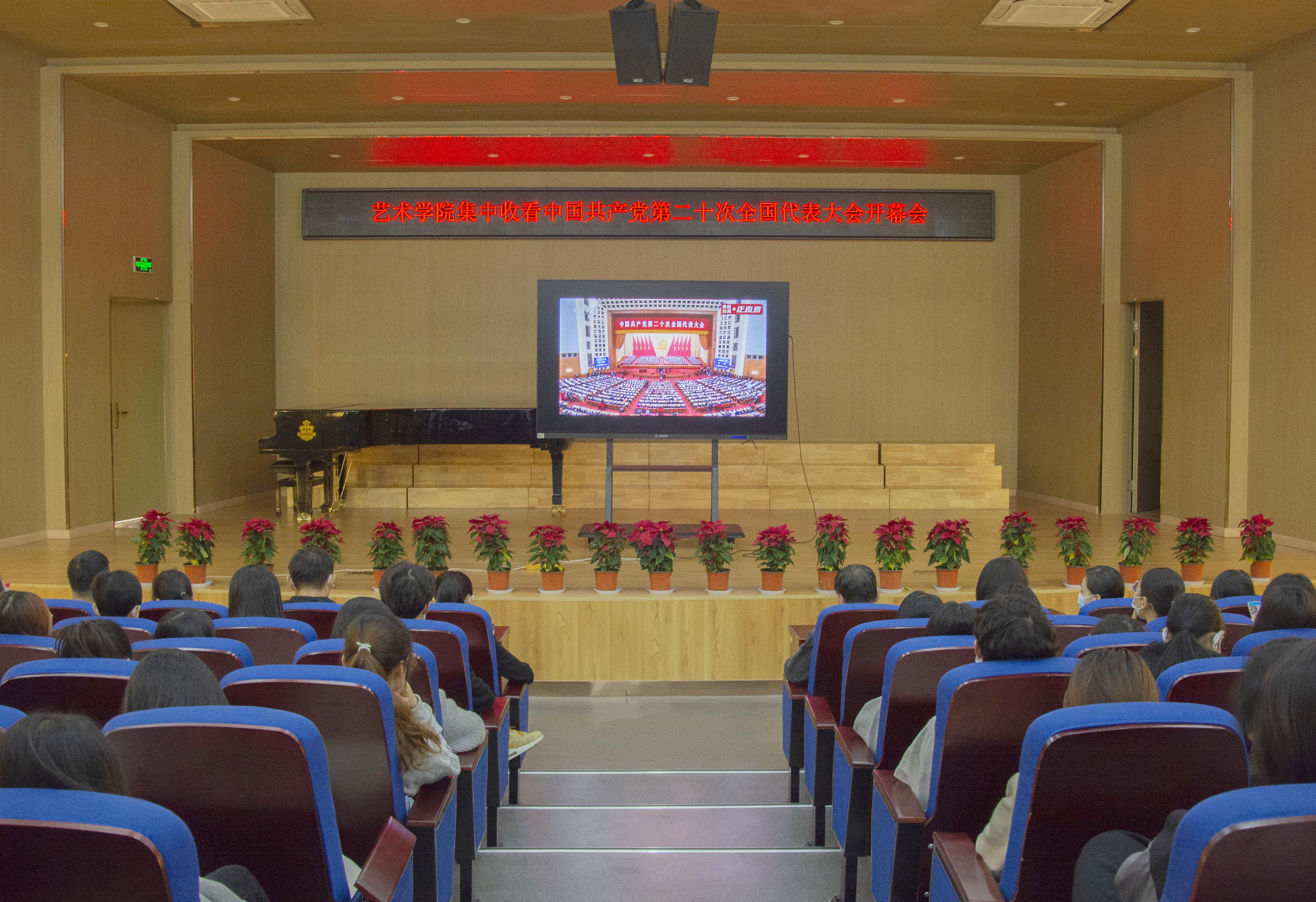 校团委组织团学干部在大学生活动中心集中收听收看党的二十大开幕会盛况,各二级学院分别设立党员师生、团学干部、入党积极分子分会场,二级学院党政班子成员、团学骨干等在分会场收看了开幕会。同时,学校通过在校园主干道悬挂宣传横幅、举办书画展等形式,积极营造热烈庆祝党的二十大胜利召开的浓厚氛围。