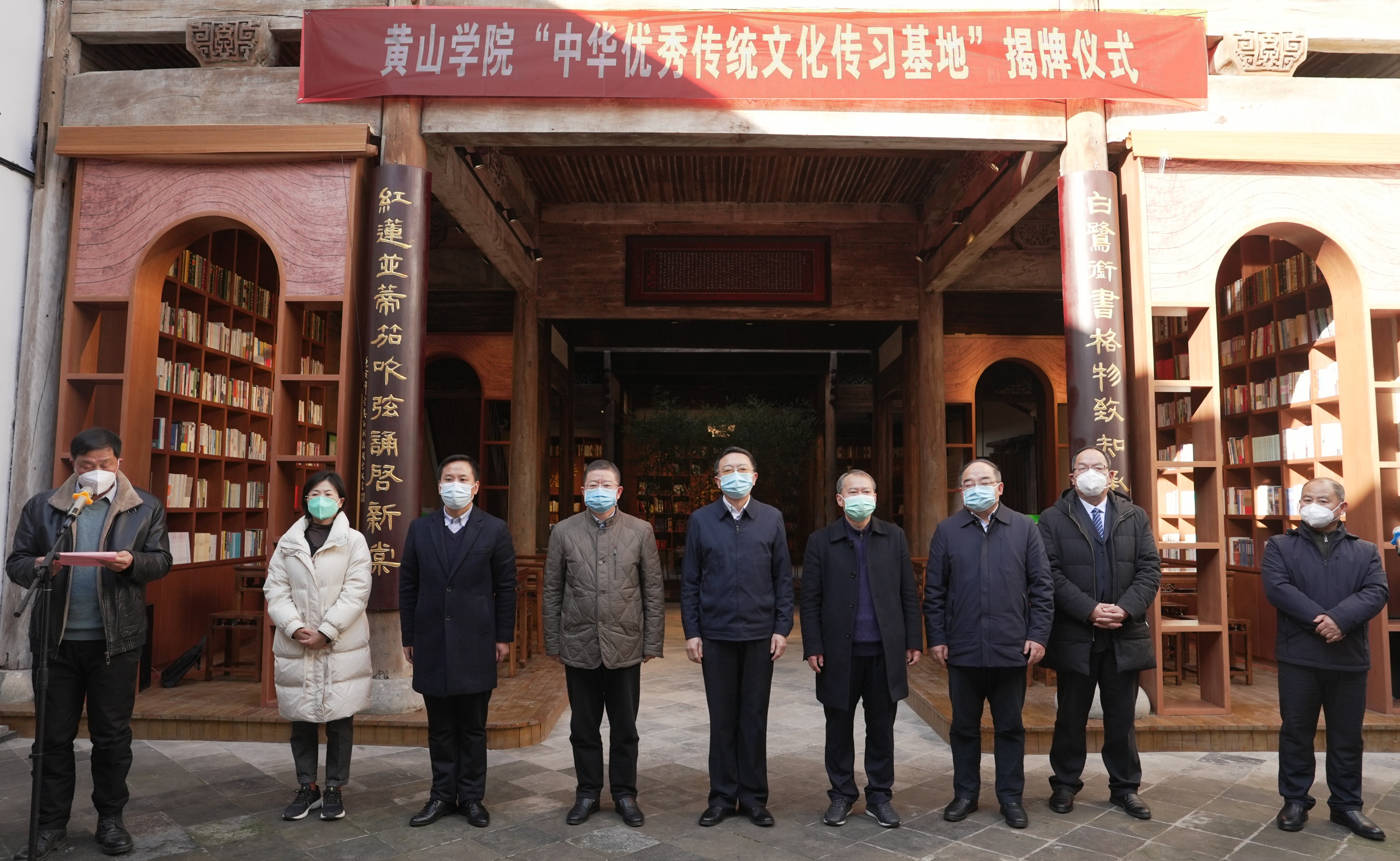 1月7日上午,校党委书记汪枫率办公室、组织部、教务处、文学院等相关单位负责人,赴休宁中学为“中华优秀传统文化传习基地”揭牌。休宁县委书记吴云忠,副县长胡芬,休宁县教育局、休宁中学相关负责人参加揭牌仪式。仪式由休宁中学党总支书记宋新田主持。