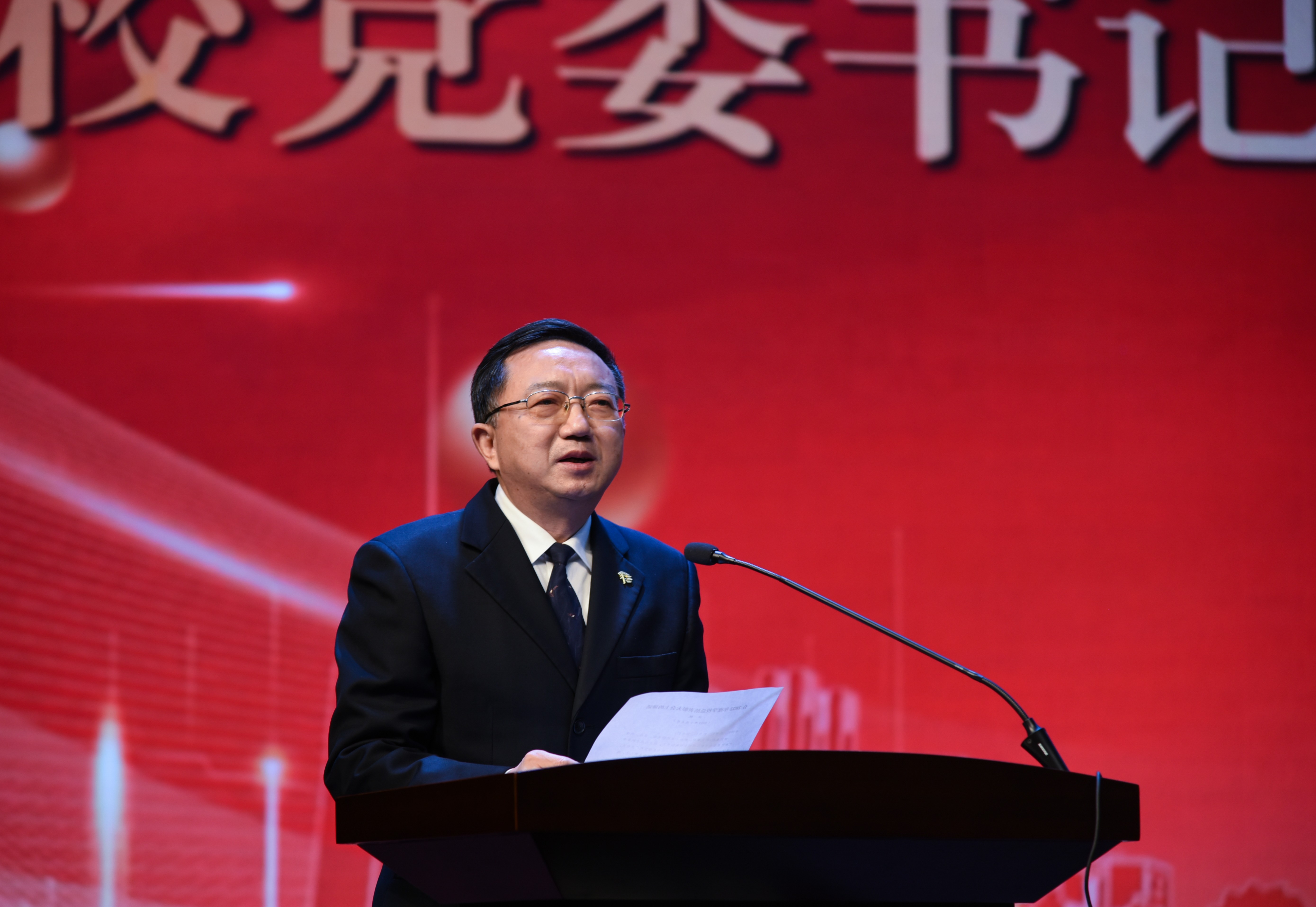 校党委书记汪枫代表校党委向辛勤工作的全校教职员工,向立志成才的莘莘学子,向老有所为的离退休老同志,向心系母校的广大校友,向所有关心、支持学校发展的各级领导和社会各界人士,致以诚挚的问候和新年的祝福。他指出,2022年,是我国历史上极不平凡的一年。这一年,党的二十大胜利召开,描绘了全面建设社会主义现代化国家、全面推进中华民族伟大复兴的宏伟蓝图。这一年,我们凝心聚力,攻坚克难,学校党建和事业发展取得新突破、迈上新台阶。