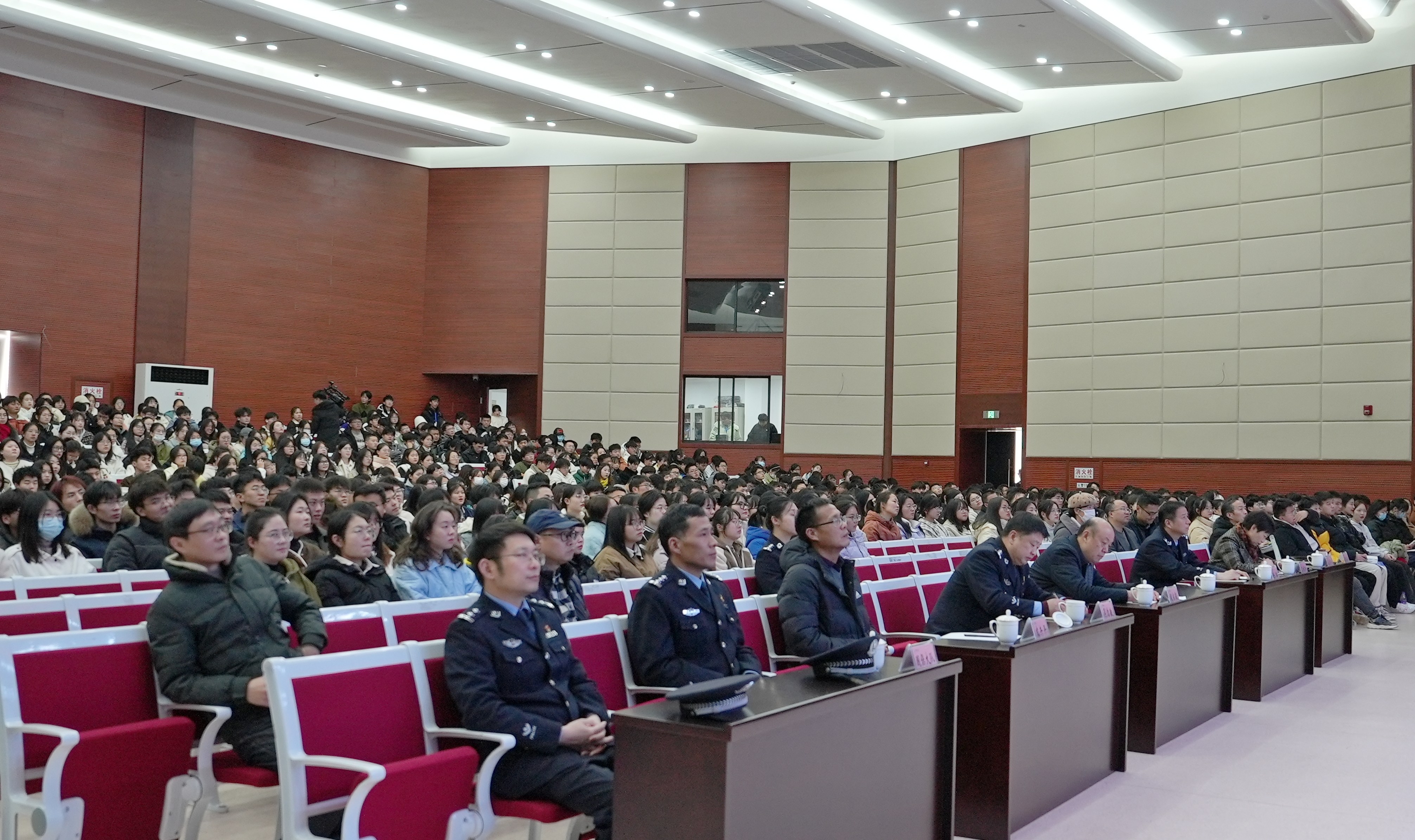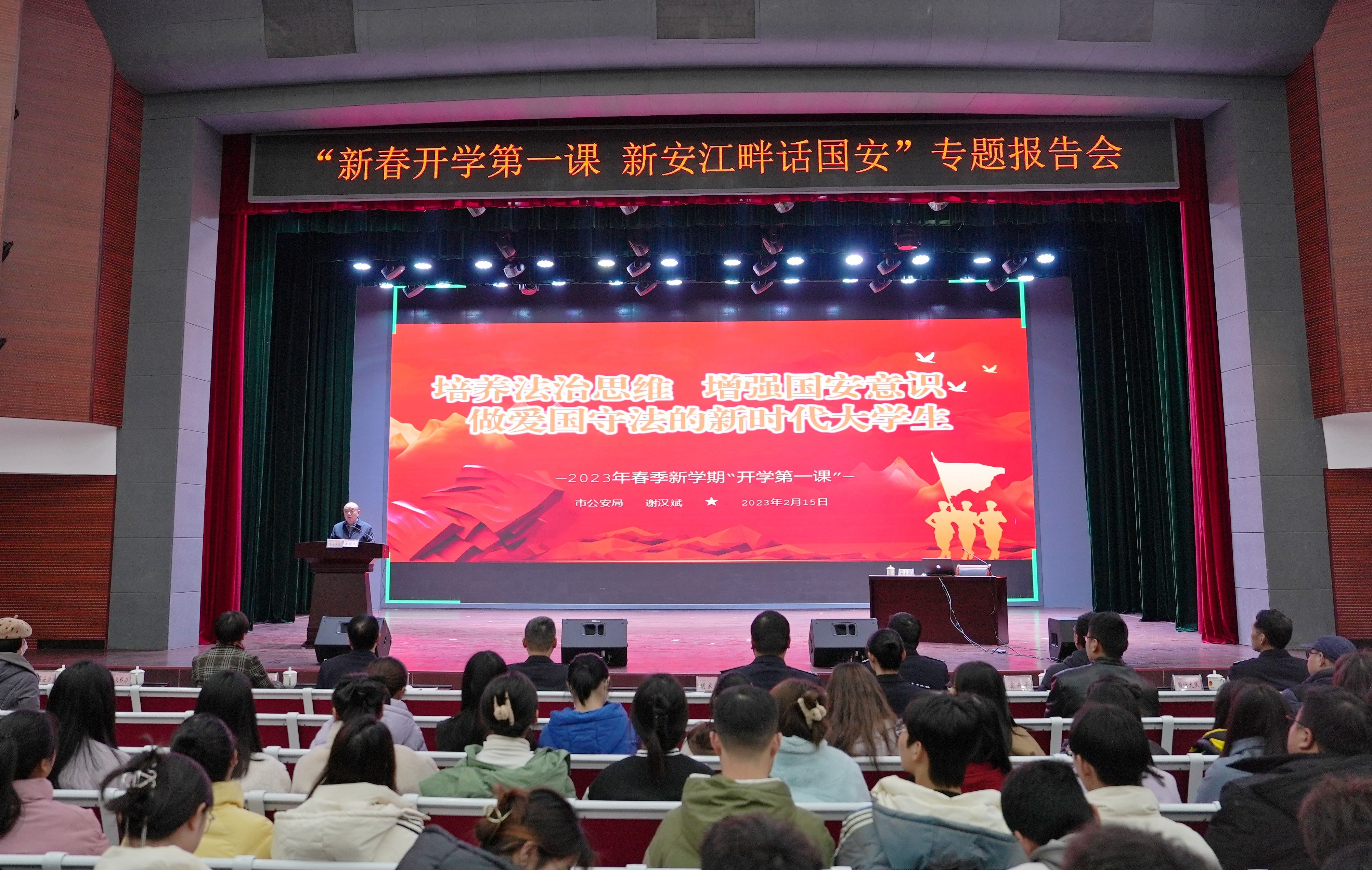 为深入学习贯彻党的二十大精神,坚定不移贯彻总体国家安全观,提升师生国家安全意识和素养,进一步筑牢国家安全的人民防线,2月15日下午,黄山市公安局党委副书记、常务副局长谢汉斌应邀在我校大学生活动中心作题为“培养法治思维 增强国安意识 做爱国守法的新时代大学生”专题报告。校党委副书记胡家俊,黄山市公安局国保支队支队长吴洁敏,屯溪公安分局党委副书记、政委洪瑞出席报告会。屯溪区国安办、屯溪区反邪教协调股、屯溪公安分局国保大队、阳湖派出所,我校保卫处、学生处、团委等相关部门、职能科室负责人,辅导员、学生代表参加报告会。报告会由胡家俊主持。