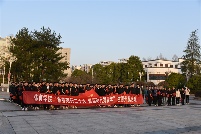 为进一步学习贯彻党的二十大精神,上好“开学第一堂思政课”, 3月6日清晨,体育学院在率水校区徽文化广场举行“青春践行二十大 做新时代好青年”主题升旗活动。学生处负责人,该院党政领导、教师代表、学生会学生干部及2022级全体学生共200余人参加了主题活动。活动由该院党总支相关负责人主持。