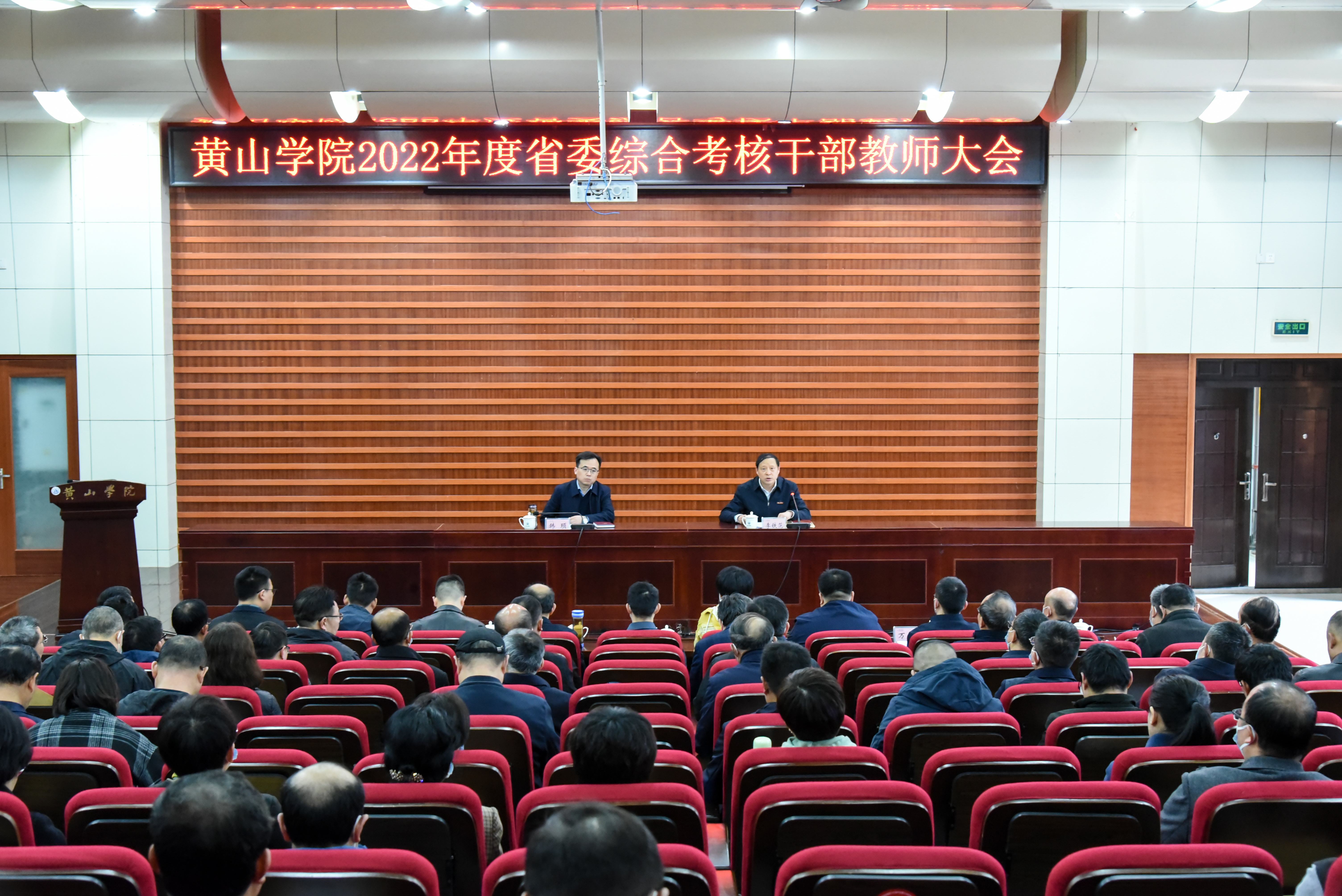 3月9日上午,博业体育(中国)官方网站-登录入口2022年度省委综合考核干部教师大会在逸夫图书馆二楼报告厅召开。考核组副组长、省委组织部干部教育处处长、安徽组织干部学院院长、一级调研员韩顼及考核组成员出席会议。我校领导班子成员、机关部门领导班子成员、二级学院党政正职、省级以上“两代表一委员”、民主党派市级以上主委、学校教代会执委、正高职称人员及学生代表参加会议。会议由校党委副书记、院长李铁范主持。