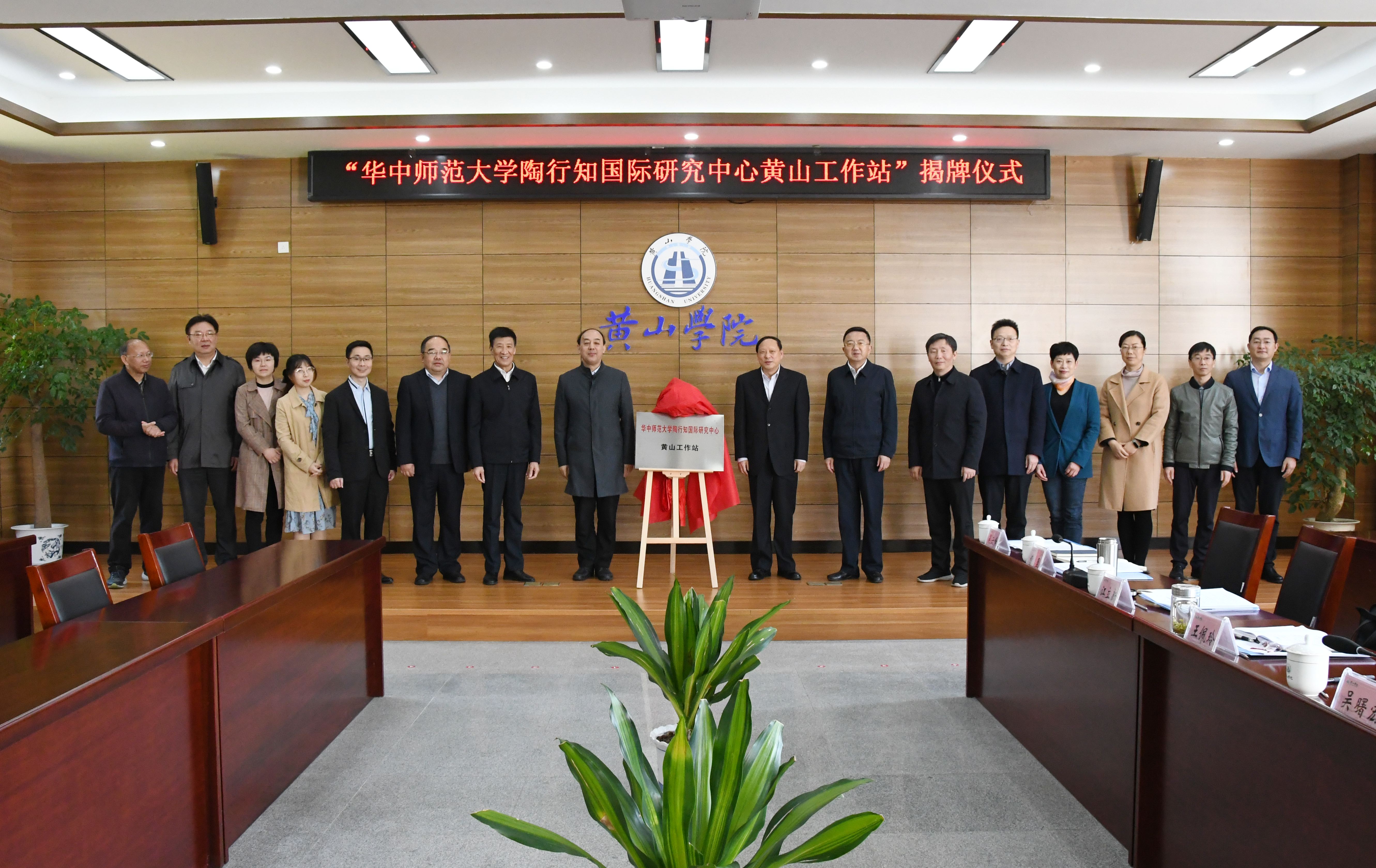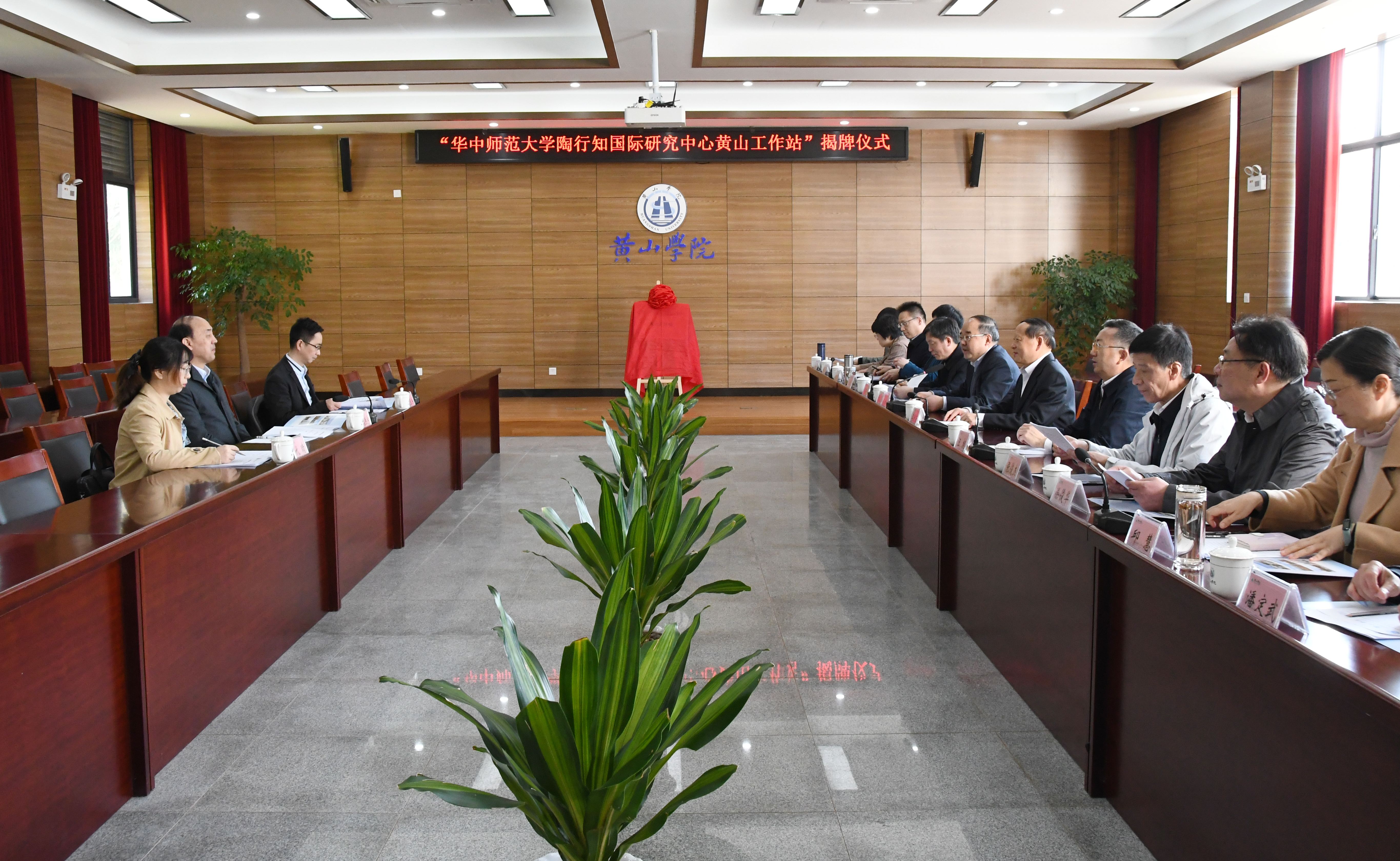 4月8日上午,“华中师范大学陶行知国际研究中心黄山工作站”揭牌仪式在我校文昌南楼108会议室举行,中国教育学会副会长,华中师范大学国家教育治理研究院院长,教授、博士生导师周洪宇,校党委副书记、院长李铁范,校原党委书记、陶行知教育思想研究会会长汪枫,党委委员、副院长张小明,黄山市政协原副主席、陶行知研究专家张俊杰,市委教育工委委员、市教育局副局长吴曙宏,黄山市教育科学研究院副院长江立新出席揭牌仪式,我校相关部门、学院负责人参加揭牌。