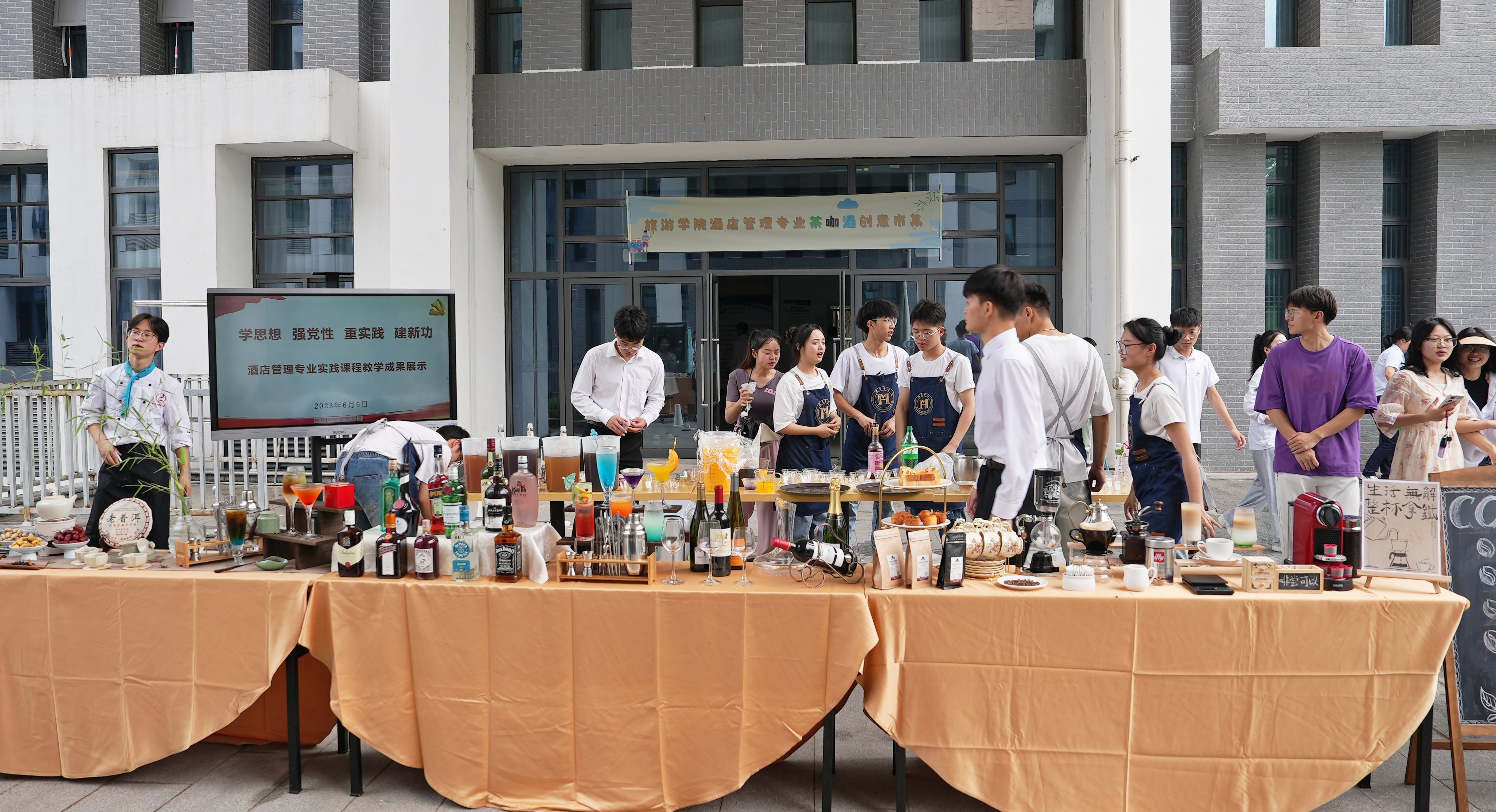 本次酒店管理专业实践教学成果展共展示了咖啡、鸡尾酒、新中式调饮三类成品,并根据三类成品的特征进行展台陈列设计、饮品调制、服务接待等课程成果展示,部分展示了该专业在实践课程教学改革方面取得的成效。